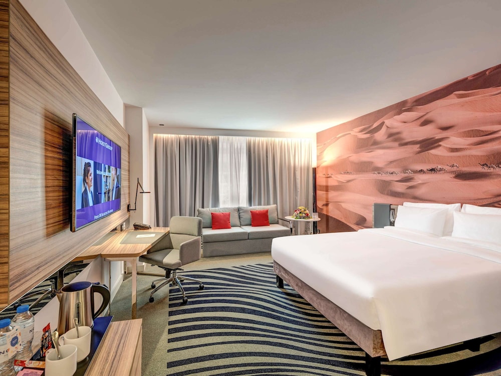 Experience an abundance of unparalleled facilities and features at Novotel Sharjah Expo Centre.Maintain seamless communication using the complimentary Wi-Fi at hotel.Effortlessly arrange transportation to and from the airport using the hotel's airport transfer services.Discover the wonders of Sharjah with ease by utilizing the services provided by car hire and shuttle. For visitors traveling by automobile, complimentary parking is available. During your stay at this fantastic hotel, the attentive front desk personnel can provide you with a range of amenities such as concierge service, express check-in or check-out, luggage storage and safety deposit boxes. In search of city's top entertainment, seek assistance at the hotel's ticket service and tours for reservations.During chilly days and evenings, the hotel provides an in-house fireplace to ensure your warmth.At the hotel, utilize the on-site dry cleaning service and laundry service to maintain your beloved travel attire fresh, allowing you to bring fewer clothes. Craving relaxation? Make the most of your stay at the Novotel Sharjah Expo Centre with convenient amenities like 24-hour room service, room service and daily housekeeping at your disposal. Kindly note that smoking is prohibited in the hotel to ensure fresher air for all visitors.For visitors wishing to smoke, designated smoking zones can be found. At Novotel Sharjah Expo Centre, every guestroom is provided with convenient amenities and fittings to ensure a comfortable stay.Enhance your experience at hotel with the knowledge that certain rooms are equipped with linen service, blackout curtains and air conditioning for your convenience.Certain rooms offer in-room amusement features such as the television for your enjoyment. In select rooms within the hotel, a coffee or tea maker and mini bar is available to cater to your requirements when desired. It is worth noting that certain guest bathrooms feature a hair dryer, toiletries and towels for your convenience. Begin your day with a scrumptious on-site breakfast available each morning at Novotel Sharjah Expo Centre.Begin your day feeling refreshed and invigorated as you enjoy a delightful cup of quality coffee available at the cafe situated within the hotel.At the hotel, an assortment of easily accessible and delicious meal choices are available to satisfy your appetite whenever it strikes. Enjoy an entertaining evening with your fellow travelers at the hotel's bar. At the hotel, discerning guests can also enjoy on-site culinary facilities like shared kitchen tailored to their preferences. During your stay at hotel, an array of engaging activities and amenities guarantees a delightful experience. During your stay, don't forget to allocate some moments to experience the readily available shoreline.Conclude your holiday perfectly with a visit to massage, solarium, steam room, spa and sauna on your final days.Be sure to drop by the pool at hotel at least once during your stay.At Novotel Sharjah Expo Centre, utmost care is taken to ensure guests' comfort. Relish your preferred beverage in your swimwear by the hotel's poolside bar. Discover the fitness amenities at hotel to maintain your health and strength during your getaway.