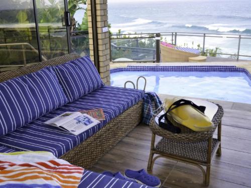 Featuring a patio with garden views an outdoor swimming pool and a garden Ocean View can be found in Ballito close to Willard Beach and 2 km from Ballito Shopping Mall. This property offers access to a balcony free private parking and free WiFi. The apartment features 2 bedrooms a flat-screen TV with cable channels an equipped kitchen with a microwave and a fridge a washing machine and 2 bathrooms with a shower. A barbecue is available on site and fishing can be enjoyed within close proximity of the apartment. Ndlondlo Reptile Park is 5 km from Ocean View while Crocodile Creek is 7