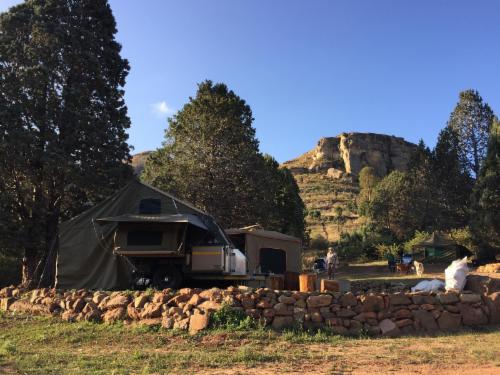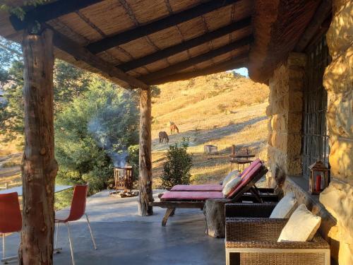 Old Mill Drift Guest Farm is a pet friendly, family friendly mountain getaway situated 27km from Clarens. With more than 14km's river frontage and nestled in the Maluti Mountains, the scenery is nothing short of spectacular. The farm’s picturesque landscape is enclosed in parts by forest and saturated with three natural springs which form various natural pools, three dams, small waterfalls (summer season only). Perfectly suited for couples, families and groups of friends who want to get away from it all. The accommodation comprises of four Chalets, two Lodges, two Wendy