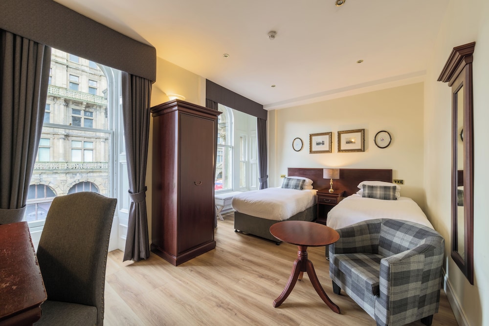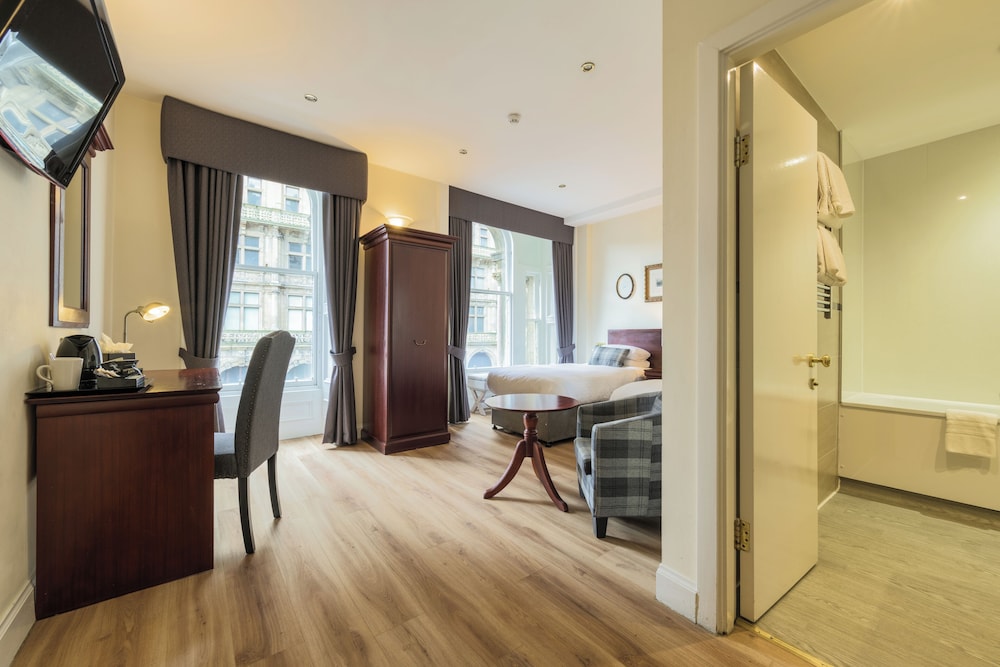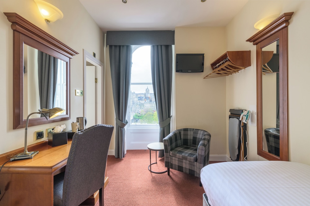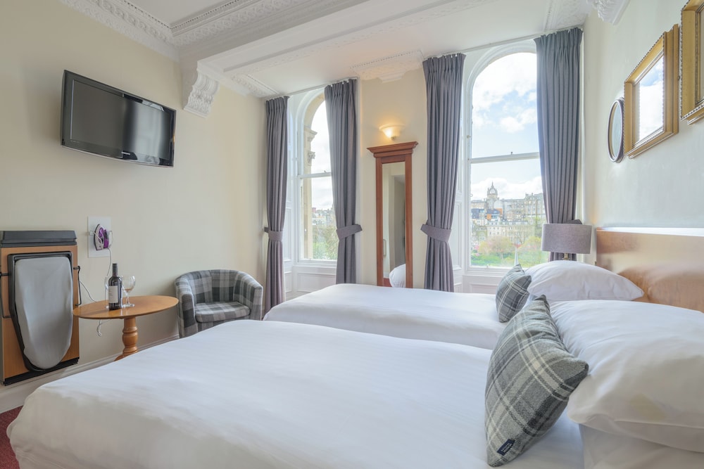 Positioned on Princes Street right in the heart of the city, Old Waverley Hotel enjoys views of the city skyline, as well as the Scott Monument and the Castle behind. Sharing these, are the front-facing bedrooms, as well as public rooms, all of which are at first floor level and add a striking contemporary decor style to a traditional environment.The hotel is a landmark building that dates back to 1848. Its central location is perfect for those wishing to explore the many varied attractions that Edinburgh has to offer. The hotel has an atmosphere of comfort and tradition and is directly opposite the station and Tourist Information Office.