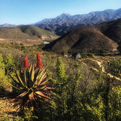 You can take leisurely walks on the farm roads, along the river’s edge and to explore the Karoo Koppies. If you feel inclined towards more exertion, there are a variety of challenging hikes which take you into the pristine wilderness of the area. You can swim or canoe in the Gamka River. The yellowfish in the Gamka River provide many passionate fishermen with their favourite fly-fishing. There are also black bass, mogga, and eel for those who prefer stationary fishing. The area is a bird watcher's paradise with over 118 different species spotted. The resident pair of fish eagles share a view of the river with you. The Grey heron, hamerkop, cormorant and various kingfishers also favour the elevated vantage point above the river. Smaller birds like weavers, bee-eaters and swallows are always active between the river and the vegetation. The region also boasts the highest concentration of Pale Chanting Goshawk in the southern hemisphere. High over the Swartberg, the black eagle can be spotted gliding in search of prey. Also for those who appreciate the micro level, a wide variety of succulents abound in the area. Succulent enthusiasts come from far and wide to observe the tiny, the small, and also the larger succulents of the area. The veld, even when dry, is perpetually green, because of the abundance of Spekbos, and Guarrie. During autumn the Aloe Ferrox flowers dominate. Spring is ushered in by a diverse array of flowering veld bulbs. The Old School House is situated in the heart of a World Biodiversity Hotspot. This means that we are situated in one of the most biologically rich and most endangered areas on earth. There are 35 such areas in the world and three of them – Succulent Karoo, Fynbos and Subtropical Thicket – intersect in this area. For an area to be declared a Biodiversity Hotspot, it must contain at least 1500 species of endemic plants or animals and have lost at least 70% of it’s original habitat. This is what gives it it’s special conservation status and makes it especially interesting. Eco-tourism, and the interested involvement of as many concerned visitors as possible, is an essential part of Biodiversity Hotspot conservation.
