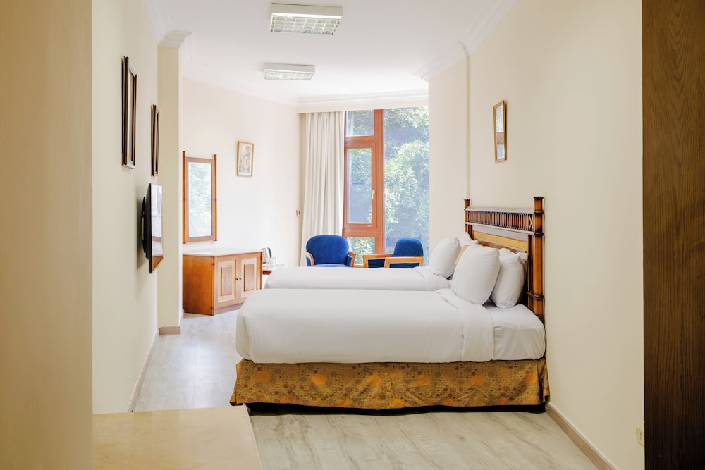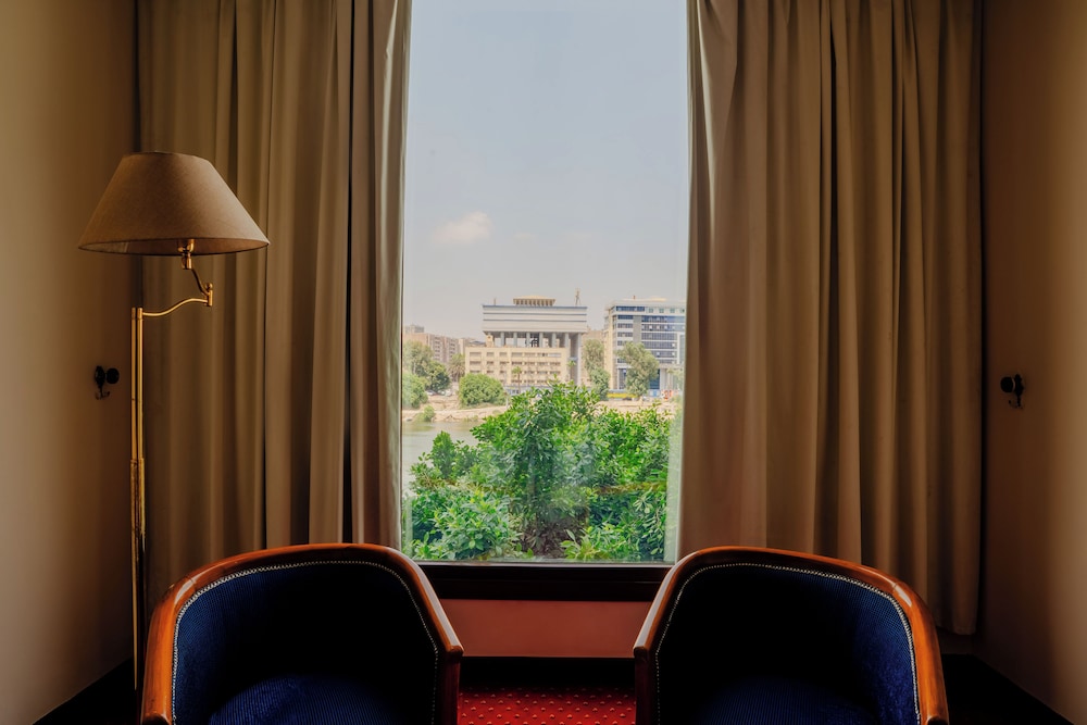 Om Kolthoom Hotel & Tower is built on the site of the Om Kolthoom Villa and overlooks the Nile River and Cairo city. This 16-floor hotel features 105 air-conditioned guestrooms.Guests are greeted in an elegant air-conditioned entrance hall with marble floors, wood panelling and chandelier lighting. Staff at the 24-hour front desk can assist with concierge services, laundry and dry-cleaning requirements. Snacks are available from room service at any time.