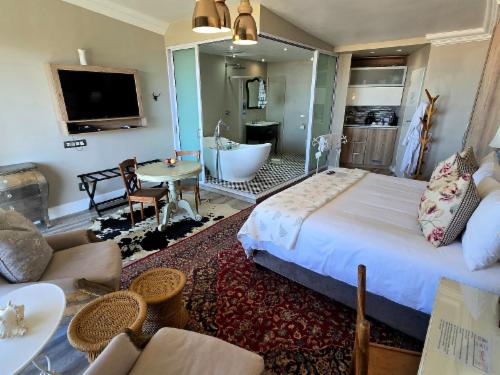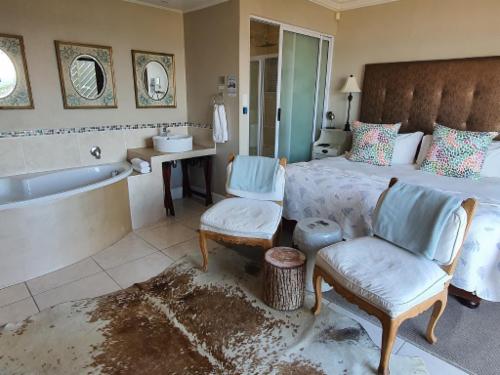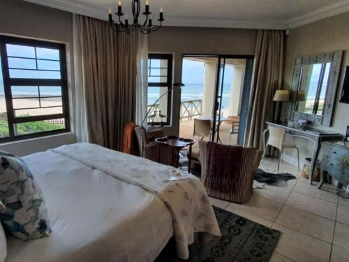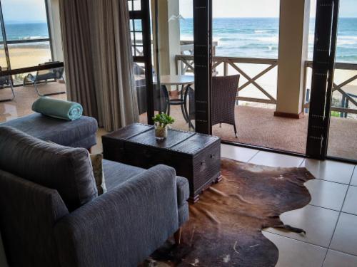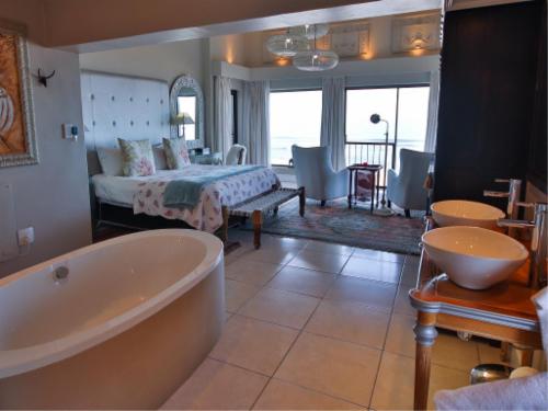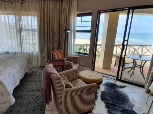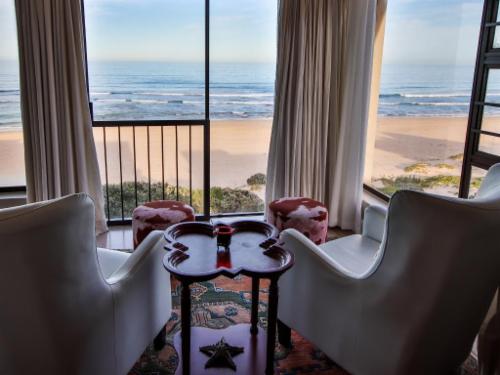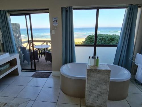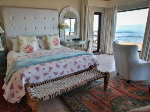 On The Beach Boutique Guesthouse and Suites in Jeffreys Bay offers a relaxed and refined atmosphere in which to enjoy the spectacular setting right on the beach. The classic design, elegant décor and harmonious ambience, combined with incredible views from most rooms, as well as the upstairs lounge, bar and outdoor verandahs, relaxes and rejuvenates and is ideal for business, pleasure - or both. We offer free use of our beach chairs and –towels to our guests. Experience the magic of a sundowner barbeque right on the edge of the beach ... Braai/barbecue facilities and picnic tables are availabl