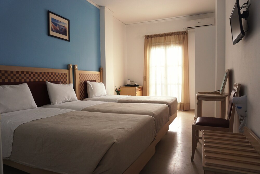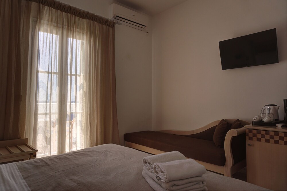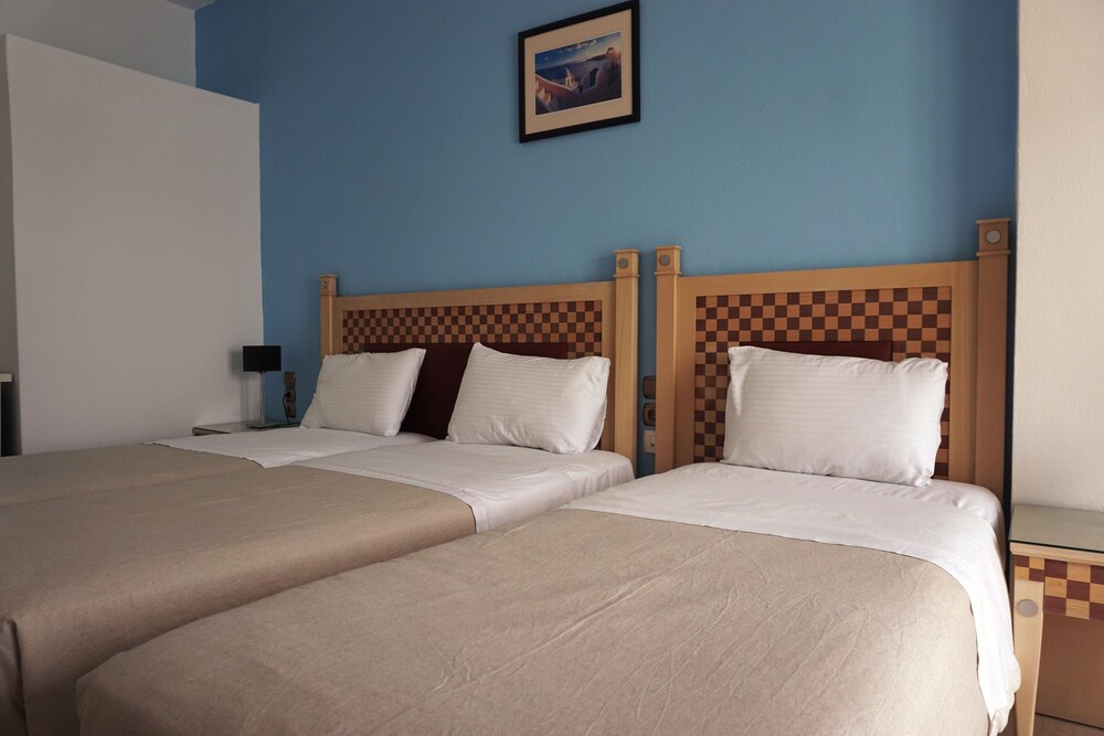 The oxygen sea side hotel is one small, cozy, family run hotel,last renovation winter 2016-2017. located on the famous black sandy beach of Kamari. The centre of Kamari is around 2 minutes' walk away while the town of Thira is around 15 minutes' by public transport, the bus station of which is only 40 m from the hotel.The hotel provides 12 rooms, some of which with sea view. All rooms have a fridge, individually controlled air conditioning and heating, satellite TV, hairdryer and wireless Internet access (all free of charge).new, large swimming pool, pool bar, reception and breakfast area.excactly front of oxygen sea side is the beach, there you can found restaurants, coffee places, mini markets, shops.