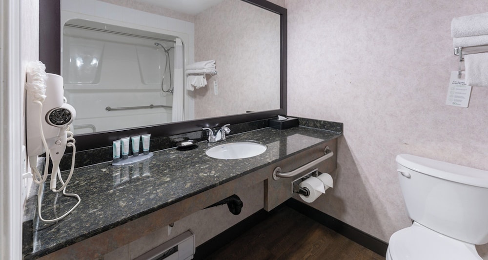 With a stay at Pacific Inn & Suites in Kamloops, you'll be in the business district and minutes from Aberdeen Mall, and close to Tournament Capital Centre. This family-friendly hotel is within close proximity of Thompson Rivers University.Rooms Make yourself at home in one of the 39 individually furnished guestrooms, featuring MP3 docking stations and flat-screen televisions. Your room comes with a Select Comfort bed. Cable television is provided for your entertainment. Private bathrooms with shower/tub combinations feature complimentary toiletries and hair dryers. Take advantage of recreational opportunities offered, including a spa tub, a fitness center, and a seasonal outdoor pool.Dining Satisfy your appetite at the hotel's restaurant, which serves lunch and dinner, or stay in and take advantage of room service (during limited hours). Quench your thirst with your favorite drink at a bar/lounge.Business, Other Amenities Featured amenities include express check-in, express check-out, and complimentary newspapers in the lobby. Planning an event in Kamloops? This hotel has facilities measuring 7535 square feet (700 square meters), including a meeting room. Free self parking is available onsite.