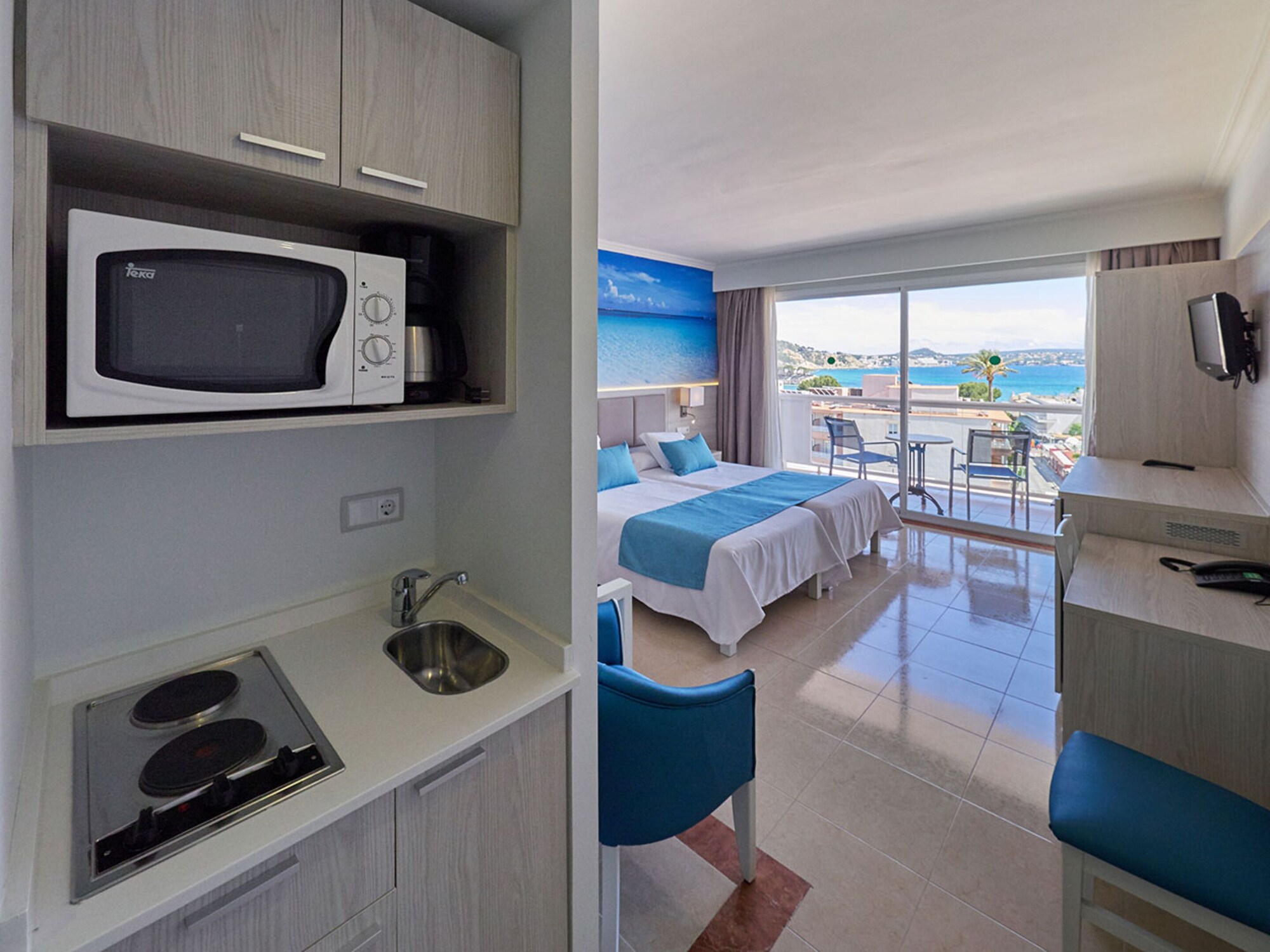 Facilities and services include wireless Internet access, 24 hour reception, restaurant, bar, swimming pool and parking (extra charge).Rooms feature air conditioning, T.V, telephone, coffee maker, fridge, microwave, safe (cargo extra), balcony/terrace, hairdryer and bathroom.Please note that some of the above facilities may be closed due to weather / seasonal conditions.Please note that the air conditioning in the rooms is controlled centrally by the hotel, therefore the air conditioning is only turned on during specific hours during the day which may vary.Address: Calle Eucaliptus 11, 07160 Paguera, Mallorca, Spain.