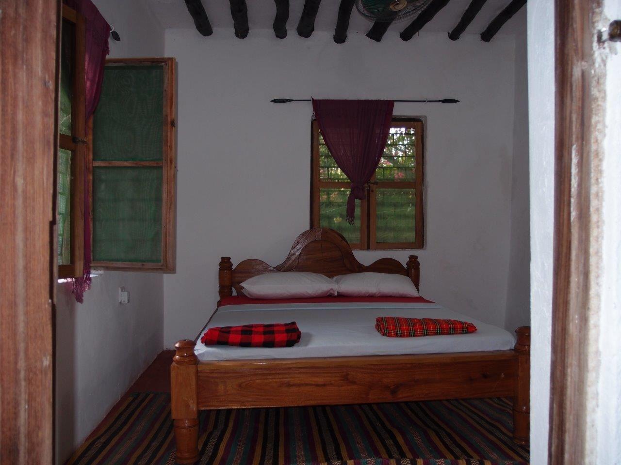 The Paje Hotel-Villa is a New Boutique guest house converted from a traditional built Swahili Villa set in large gardens with Swimming pool, honesty bar and BBQ area. Located only 100m from the Paje beachInside the Villa we offer 5 bedrooms; consisting of 4 doubles and 1 small single/children’s room; all rooms come with a ceiling Fans, Mosquito nets and Linen, 3 rooms with private bathrooms, a well-equipped shared Kitchen, FREE Wi-Fi, outside dining area, BBQ , Swimming pool, large gardens, sunbeds, umbrellas, secure with live in management coupleAlso available: A/C an