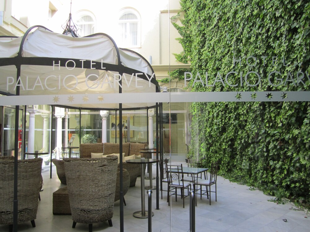 This exclusive, historical 19th century palace is located in the heart of the historic quarter of Jerez de la Frontera, in Rafael Rivero square and next to Calle Larga.//The Palacio Garvey was, in its day, the grand residence of the Garvey family. Today, this spectacular monument has been meticulously restored and transformed into a luxury hotel while maintaining its original 19th century neo-classical architectural style as well as combining it with a modern service. It includes a total of 3 floors with 16 rooms. Guests are offered a cosy bar, an air-conditioned restaurant and a public Internet terminal. Further facilities include room and laundry services as well as parking facilities for those arriving by car.//The spacious luxury rooms captivate guests through wonderful furnishings. Guests spend their stay relaxing in the inviting atmosphere of the exclusively styled rooms, which provide a range of excellent services. All the rooms contain a modern bathroom that includes a hydro-massage spa shower and a bath. Further facilities include a flat-screen television with satellite connection, a stereo system with CD player, a minibar, air conditioning, a hire safe, telephone (also in the bathroom) and Internet access (ADSL) as well as parquet floors.//Guests have the option of using the in-house solarium.