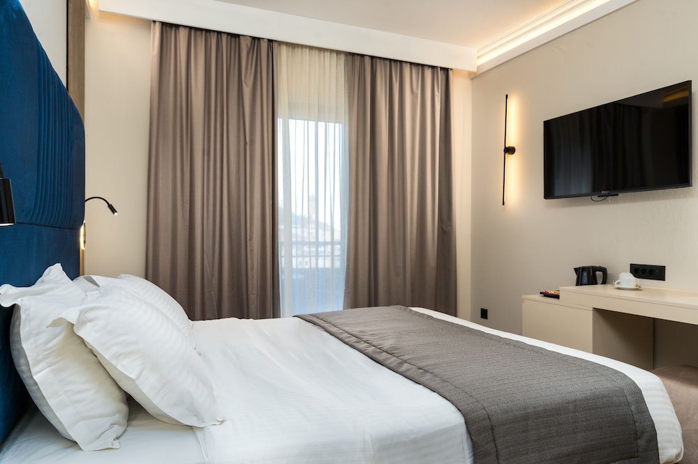 The hotel is situated in the town of Zakynthos, a short distance from the city's commercial centre. It is set in a quiet area, only 100 m from the seafront. Zakinthos International Airport is about 4 km away.This is a luxurious hotel with charming decoration that offers its guests a welcoming atmosphere, friendly service, comfortable accommodation and many amenities. It consists of a conference centre that can accommodate meetings and events for up to 300 people. There is also a restaurant and a relaxing bar. There are a total of 68 rooms at this charming city hotel. Guests are welcomed in a lobby with 24-hour reception. Further facilities include a cloakroom, newspaper stand, TV lounge, children's playground, and wireless Internet access. Room service and a laundry service are also available (both for a fee).The hotel has 68 tastefully decorated rooms, all designed in a way to ensure a comfortable and pleasant stay. All rooms have their own balcony overlooking the hills of the city or the blue Ionian Sea. Each one offers a fully stocked minibar, individually controlled air conditioning, central heating, en suite bathroom with shower, wireless Internet access and a hairdryer. Further in-room amenities include a direct dial telephone, satellite cable TV and a safe.The nearby beach is rocky.The hotel offers a rich American-style breakfast buffet. The restaurant serves modern Mediterranean cuisine creating a gastronomic trilogy of flavours, tastes and enjoyment. Guests can experience the delicious cuisine and refined tastes prepared with fresh products of local and Mediterranean cuisine.