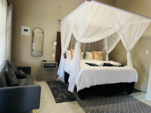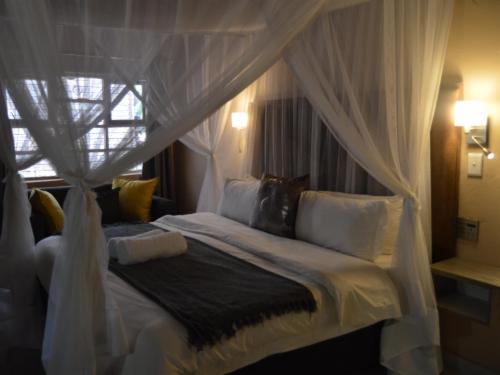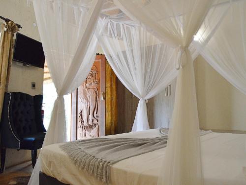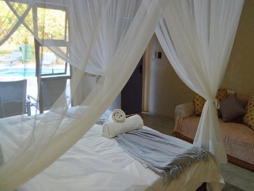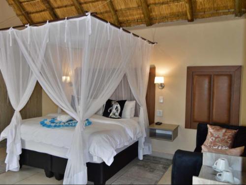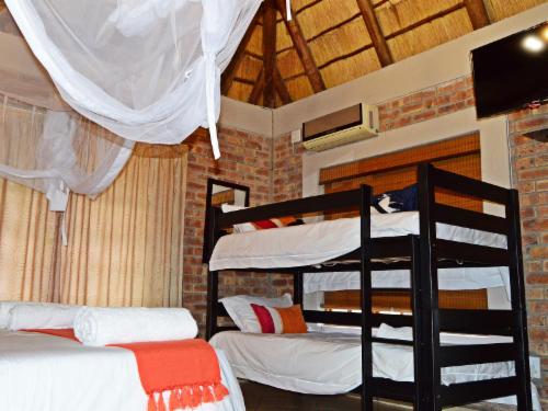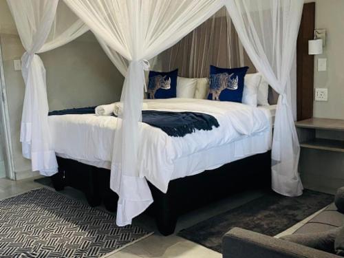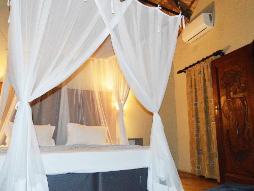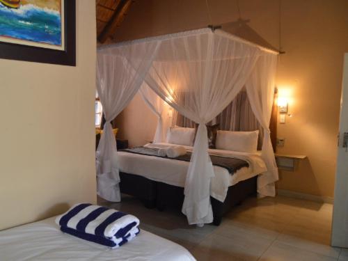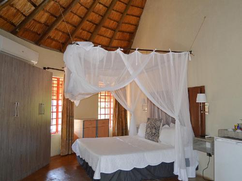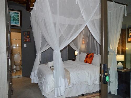 Pan African Safari is a luxury lodge in Marloth Park, between Malelane and Komatipoort on the N4.The lodge offers seven air-conditioned rooms that can accommodate up to two guests, except for one single room with space for only one guest. The rooms have comfortable beds with mosquito nets and each room has an en-suite bathroom with a bath and shower. Each room has Wi-Fi, satellite TV and tea- and coffee-making facilities.Guests can relax by the pool or at the boma under the starry sky. Secure parking is available.Guests visiting Marloth Park will see various