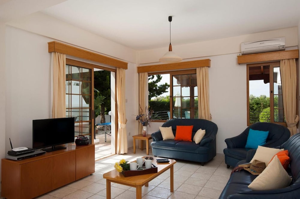 Situated on the Coral Bay of Paphos Panareti Coral Bay Resort offers self-contained accommodation just 50 metres from the sea. Facilities include an outdoor pool indoor pool and hot tub. There is also a gym and sauna. Free WiFi is provided in public areas.The comfortably furnished apartments each with a luggage table and 2 arm chairs are air conditioned. The kitchenette is fully equipped with cookware and utensils kettle and coffee maker and includes a small dining table a microwave and a fridge. A satellite TV safe and DVD player are featured.The hotel restaurant serves delicious international food throughout the day. A variety of refreshments and drinks are provided at the lounge bar and poolside bar. Guests can relax at the lobby with a satellite TV corner and there is also a mini market on site.Children can swim safely in their own pool while there is also a playground in the garden. Kids menu is available at the restaurant as well as high chairs and strollers.Panareti Coral Bay is only a 5-minute drive from Paphos Town. The property has the perfect location from which to explore the wild beauty of the Akamas the sandy beaches of Cyprus' western coast and the hillside villages in the wine region.