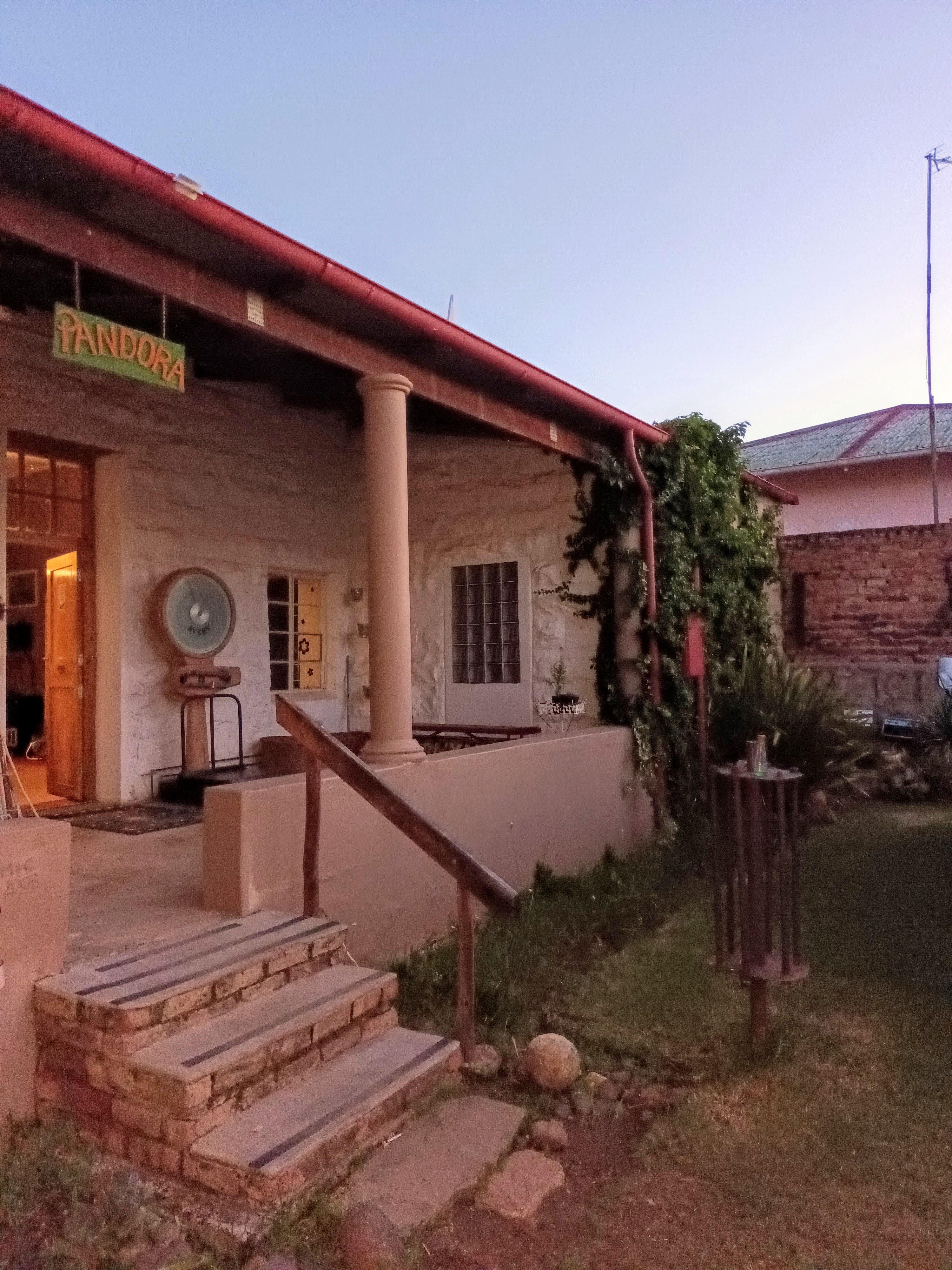 Situated on the Friendly N6 - Maluti Route, Rouxville is an ideal stop over to and from the Eastern Cape. Originally built as a "semi" some 80 years ago, this Beautiful Sand Stone later became home to Rouxville General Dealers, where one could buy anything and everything - Coal for the Aga, Butterick Dress Patterns, Fancy Wall Paper, or Bicycle Spares.The shop closed in the early 90's and the building stood empty for some time. Now converted into a spacious open plan style home "Pandora" offerers four Bedrooms ,two with Double Beds and two with twin beds. Two bathrooms, lar