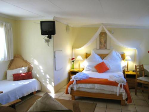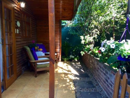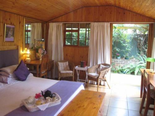 The accommodation is self-catering. All units are of a high standard, en-suite, have outside entrances and a small garden. For the comfort of guests all units are equipped with hair-dryers, bath robes, a full range of shampoo, soap etc, fans, heaters, iron and ironing-board, and desks for the business traveller. No DSTV only NetflixThe Cabin is stunning units that will make you feel as if you are in a hideaway in some lovely faraway spot. With king-size bed and bath, as well as a shower under the stars, it is ideal for honeymoon couples or that special getaway. It has its own priva