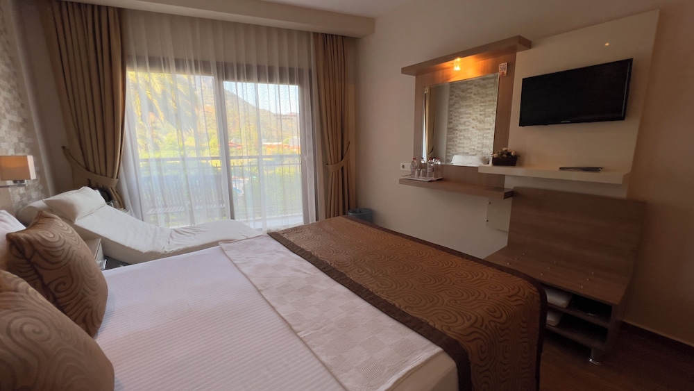 A small family-run hotel suited for those wishing to escape the fast pace of modern life. Furnished in a mix of modern and local styles, this charming hotel features a spacious garden with hammocks and soft cushions, perfect for chilling out on and enjoying the beautiful scenery and peaceful surroundings. The beach is a 5 minute stroll and a few small restaurants can be found closeby. To experience local village life, Cavuskoy is 4 km away or, for shopping, the resort of Kemer is 45 km and both can be reached by taxi or the local mini bus.