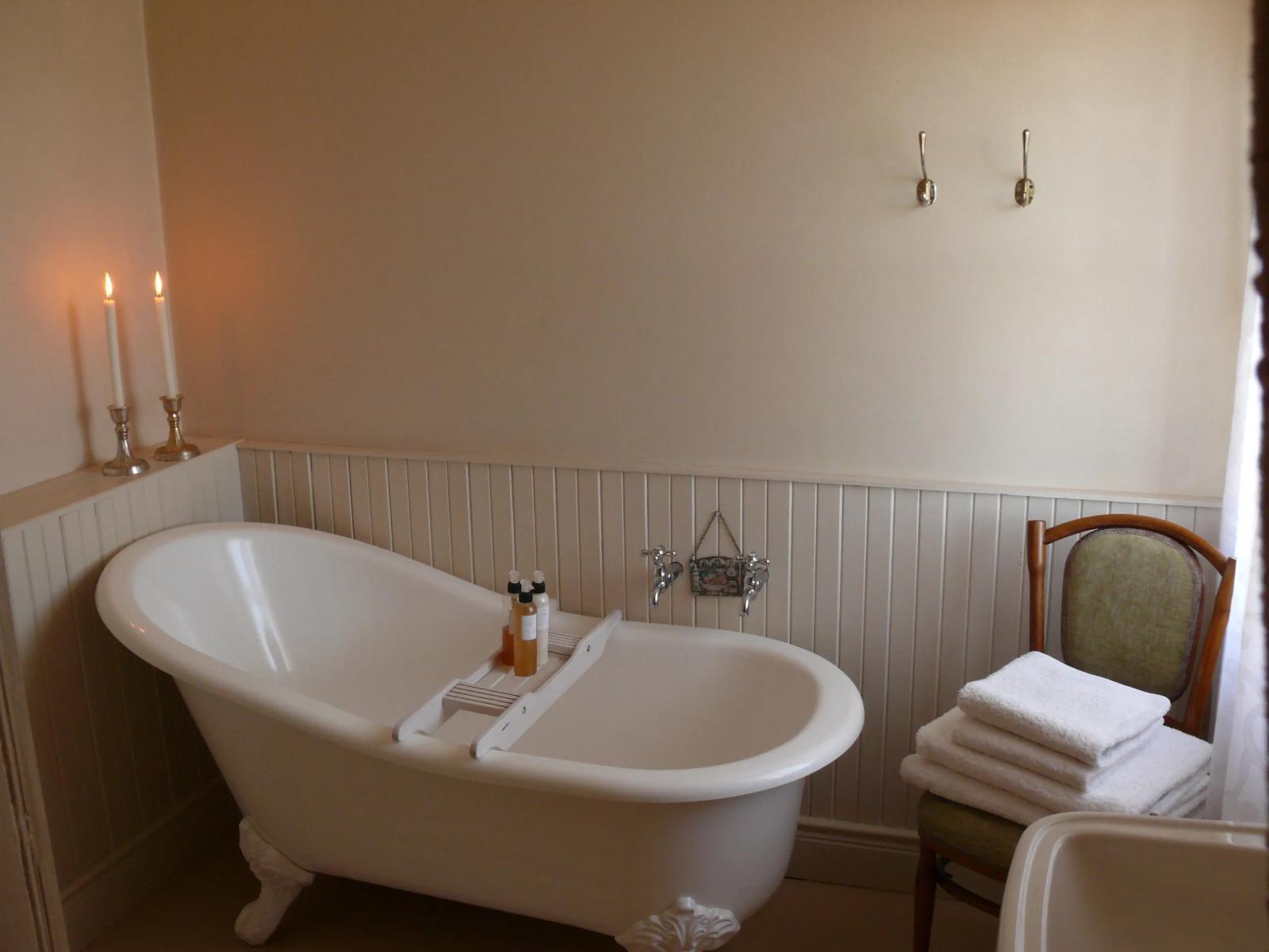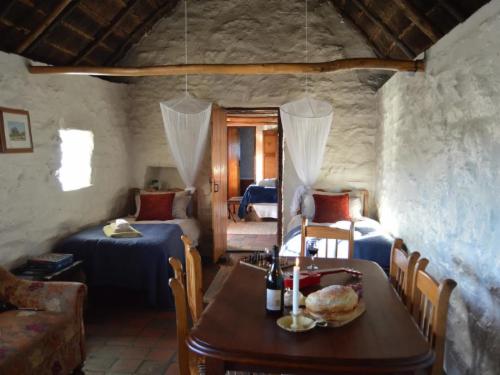 The three sandstone and thatched cottages are fully equipped, with furnishings maintaining historical charm. Gas lamps and lanterns provide lighting and add to the ambiance of the houses. Gas geysers ensure that guests can still enjoy a luxurious warm bath. The kitchens are fully equipped for those who would like to self cater, and for those who want to be spoiled, a three course dinner is prepared and breakfast is served at the main house. Each cottage has an inside hearth and down duvets. Hot water bottles are provided for the cold winter nights.