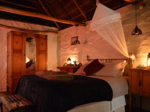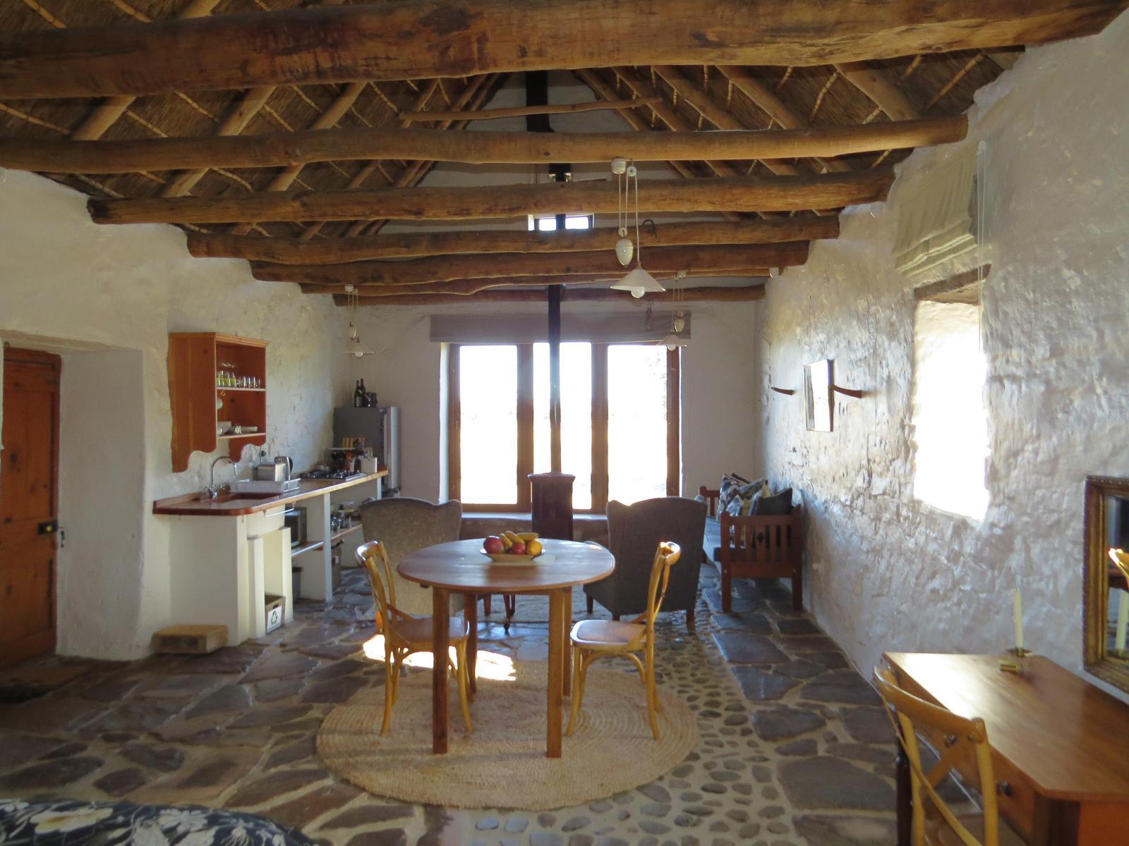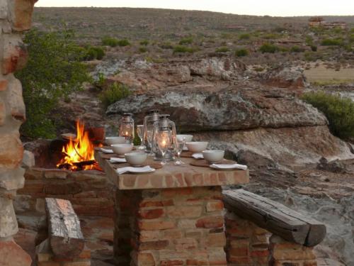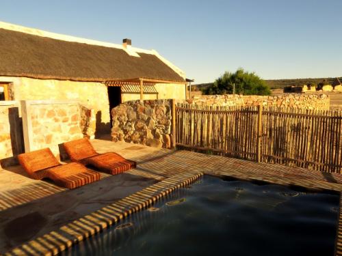 Papkuilsfontein Guest Farm is a working veld management and flower conservation farm, offering three self-catering cottages.The three sandstone and thatched cottages are fully equipped, with furnishings maintaining historical charm. Gas lamps and lanterns provide lighting and add to the ambiance of the houses. Gas geysers ensure that guests can still enjoy a luxurious warm bath. The kitchens are fully equipped for those who would like to self cater, and for those who want to be spoiled, a three course dinner is prepared and breakfast is served at the main house. Each cottage has an