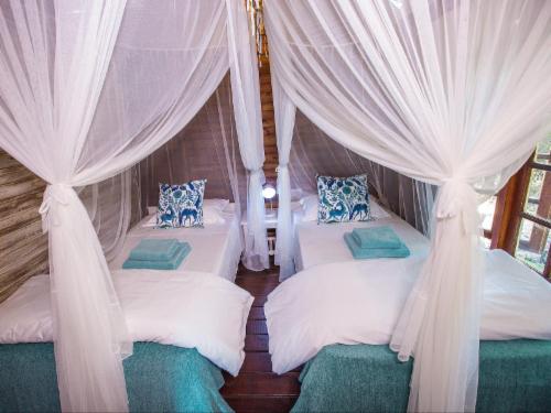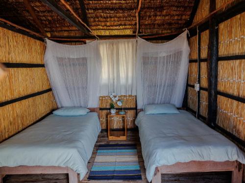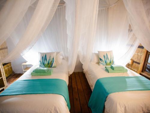 Paradise Dunes offers six self-catering cottages, all with a 180-degree seaview. The cottages are all within walking distance to the beach and is easily accessible, no need for a 4X4.Each cottage has double or single beds covered with mosquito nets, linen and a fan in every room. The kitchen is equipped with a fridge and freezer, a two-plate gas stove as well as cutlery and crockery. There are 'braai' facilities and a verandas with table and chairs. Daily cleaning services are available and there is a night guard. The cottage has a generator for backup power.There is a