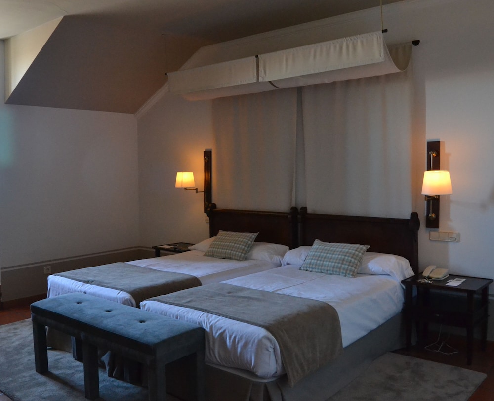 The hotel is situated on the main square in the city of Lerma. The bus station is located 1 kilometre from the hotel and the nearest train station is in Burgos. Monasterio de Silos, Covarrubias and the cathedral in Burgos are all just a 20-minute drive away. Lerma is some 36 km from Burgos, its main access road being the A-I motorway, and is 199 km from Madrid. The nearest cities to Lerma are: Palencia (55 km), Vitoria (145 km) and Logroño (165 km).//The Ducal Palace is located on the highest point of the town of Lerma. It was constructed on the site of a 15th Century castle as a place of lodging, rest and general enjoyment for King Felipe III. This building features a central courtyard surrounded by columned arcades in alternating sections: the first has 20 Tuscan columns with semi-circular arches, and the second has 20 Ionic columns. The palace was restored and converted into the hotel comprising 70 rooms and capable of accommodating up to 133 persons. Aside from the usual hotel services such as a restaurant and convention rooms, the air-conditioned hotel is also equipped with Internet/WLAN access (fees apply). Facilities include a lobby with 24-hour reception, a hotel safe, currency exchange facility, lift access and a café. Guests may also take advantage of the room and laundry services (both subject to fees). The hotel offers a car park for guests arriving by car. There is also a garage available, subject to fees.//Rooms come with an en suite bathroom, hairdryer, satellite/cable TV, Internet access, minibar and safe deposit box. Double beds come as standard. Centrally regulated air conditioning and heating also feature.//The nearest golf course is some 7 km away.