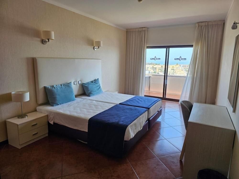 This impressive hotel is strategically located in the centre of the city of Albufeira, and thanks to the vibrant atmosphere of a typical tourist resort, it is ideal for a family holiday. The main beach and the town centre with its shopping and entertainment venues are located within a short walking distance. The hotel stands out by its bold and modern architecture, featuring a unique design with strong colours and exotic woods. Moreover, guests can take full advantage of the comfort provided by the spacious public areas, in one of the most charismatic and well known hotels on the Algarve. All the apartments are well appointed and provide a fully equipped kitchen and a private balcony to enjoy the nice views. There is a fantastic outdoor swimming pool where children can have a good time while their parents sunbathe or enjoy a good read on the sunloungers at the pool's ample terrace.ADVISE:Groups of young people and/or groups of ‘stag' and ‘hen' parties, will be charged a security deposit of 250,00 Euros per person upon arrival, that will only be refunded upon check-out after verifying that the apartment has not suffered any damage.The security deposit can be paid either in cash or by charging the amount on a valid credit or debit card, and if the guest refuses payment, he/she will not be allowed to check into the hotel.Courtesy Bus service will be suspended indefinitely from October 16th 2017
