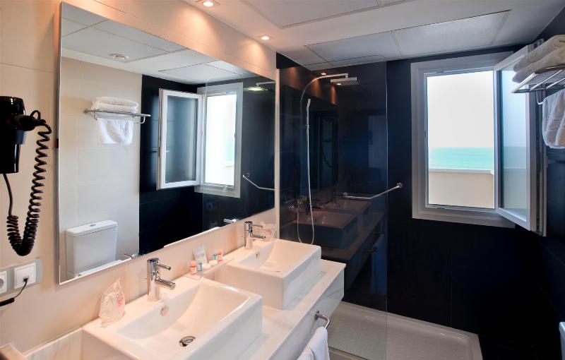 situation:It is located 80m from the beach, 200m from the city center and 17 km from Huelva.accommodation:It has 136 rooms.Standard Room: maximum 2 adults and 2 children. Comprising 2 beds 1.05 x 1.90 boards sofa bed of 0.80. It has air conditioning, bath or shower, hairdryer, telephone, flat screen TV, wi-fi, minibar, safe and a furnished terrace.Superior Room: same capacity, distribution and equipment that further separate room and bathroom equipment and sea viewsElite Room: room with different furniture, bathroom equipment and other sea views Maximum 2 adults and 1 child, same layout and equipment that room.Junior Suite: bedroom with living area in the same room with sofa bed, other furniture, other bathroom equipment, large sun terrace and sea views have same capacity, distribution and equipment that room.Communicated Double room: two double rooms with availability upon request.Facilities:Buffet restaurant with show cooking, bar-cafeteria, Snack Bar Garden with background music night, Barbecue, Playground, Lounge, Barber, 3500 m2 of gardens, swimming pool for adults and children, Laundry, Internet payment, free Wi-Fi throughout the building, Kids entertainment(15/6 - 15/9) and