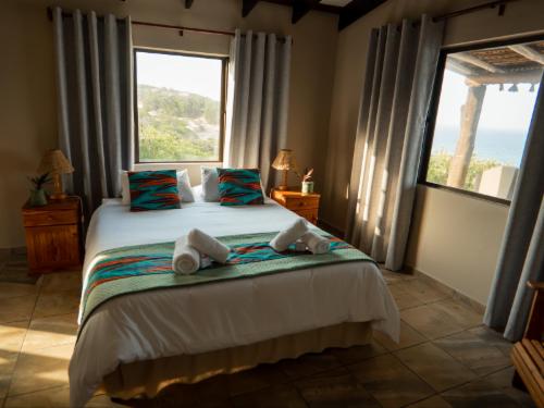 Paz do Pai Lodge offers luxurious self-catering beachfront villa accommodation, in the Guinjata bay area of Inhambane. The experience of a lifetime, just walking distance to the beach. This is the ideal destination for surf fishing, deep sea fishing, scuba diving, snorkelling, kayaking, a well-stocked Supermarket, restaurants, bars, village market, curious...everything within a 2km radius from Paz do Pai Lodge. Inhambane International airport is only 25km's from our Lodge and transfers can be arranged. Each villa has the most beautiful sea view, is very private with it's own swimming pool,