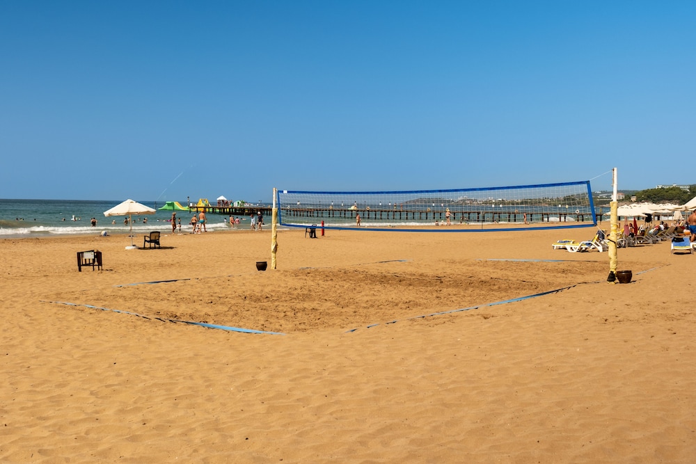 Located on a beautiful sandy beach with shallow crystal-clear water, this family-friendly hotel is a great place to enjoy a relaxing holiday. The town of Avsallar is only 2 km away, the bustling city of Alanya can be easily reached by bus or taxi within 20 minutes. Antalya Airport is 95km away. The hotel features 417 rooms, 24-hours reception, currency exchange, TV room, WIFI, meeting room, restaurants, bars, disco, spa and wellness, sports facilities, 2 outdoor pools, children's pool, medical assistance, laundry service and on-site parking. Wheelchair accessible.
