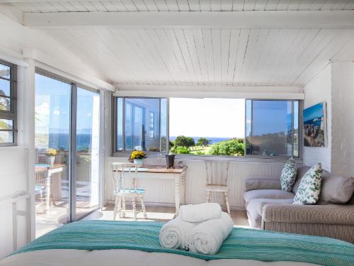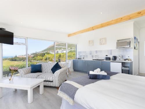 This beautiful 3 level house in Simon's Town provides luxury self-catering accommodation with stunning views across False Bay. The accommodation comprises of 4 units. All rooms have sea views. One unit has a fully equipped kitchen and three units have kitchenettes. There are braai facilities available. Guests can also enjoy access to an enclosed pool. The units may be booked separately, or all together as a Villa.The house is an easy 5 minute walk to the famous beaches of Boulders and the Penguin sanctuary, and is directly opposite the golf course. Watch the penguins an