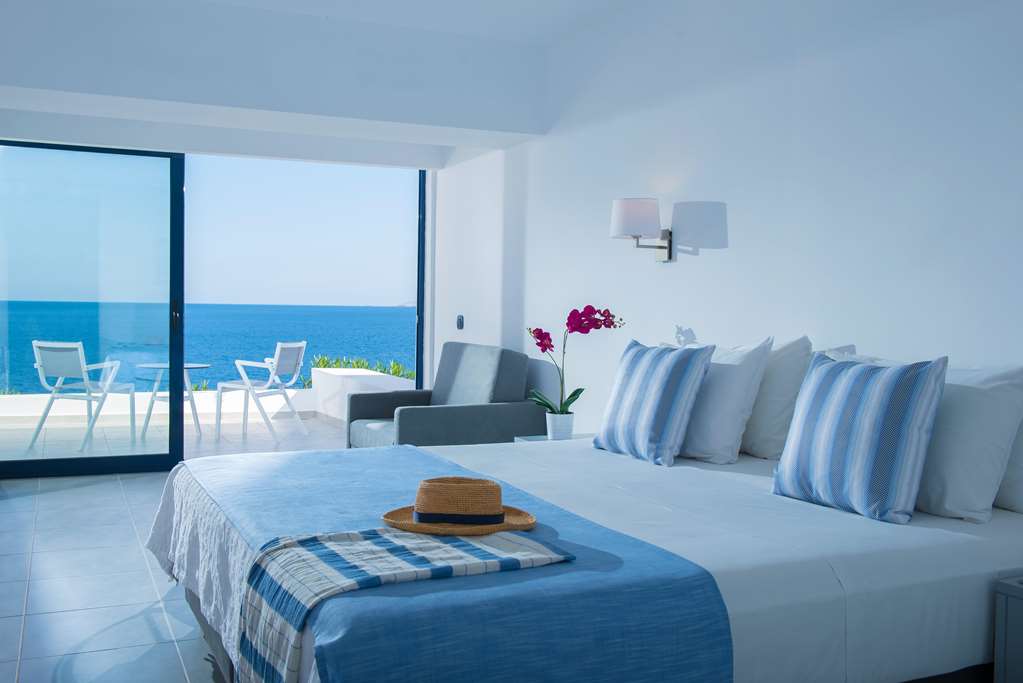 The Peninsula Resort & Spa is located in the Heraklion prefecture of Crete, in the village of Agia Pelagia, just 25 km away from Heraklion town. The hotel is built amphitheatrically on a peninsula of distinctive natural beauty between the bays of Mononaftis and Psaromoura, forming a unique panoramic view of the Mediterranean Sea. The hotel offers direct access to three different beaches ideal for swimming and snorkelling due to their protection from the frequent northeastern winds that regularly affect the North of Crete.The hotel is compromised of two main buildings and several groups of Bungalows with great views of the sea. In total the hotel offers 250 guest rooms of various types. The architectural and decorative style of the hotel is simple yet elegant aiming to maintain a traditional Cretan style and highlighting the natural colours of Greece.