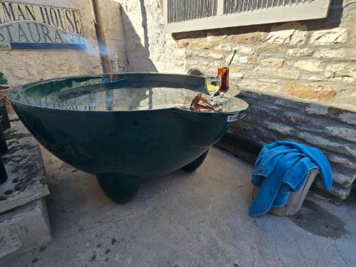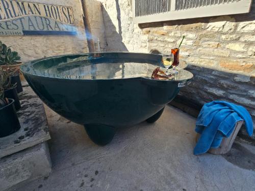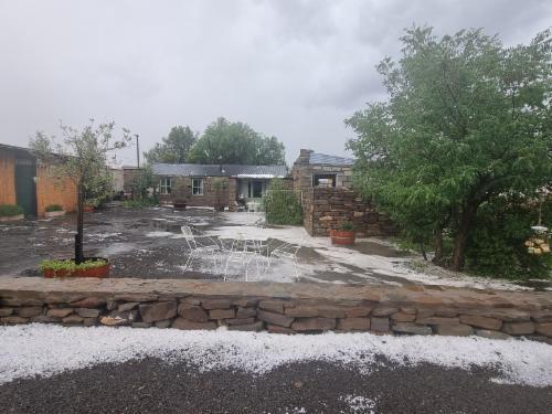 It has history, charm and bustles to its own beat. One of the oldest buildings in town and around 140 years old. The original Origan wooden floors and window frames is still visible in some of the rooms and the thick stone walls keep the home cool in summer. In winter gather around one of the fireplaces to keep warm. Bring along some wood or buy at one of the local stores to keep the fires going in the cold. We offer two (2) self catering units where all expectations are exceeded with loads of carachter and attention to detail. We supply reading materials and board games. Private en