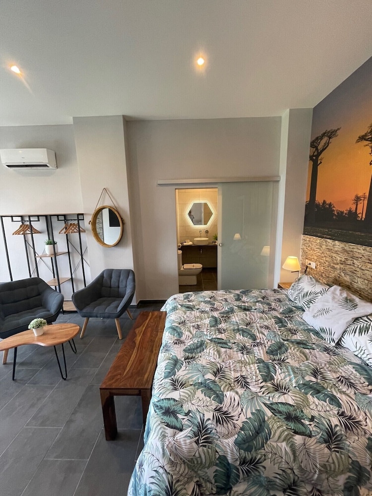 This charming hotel is located in the countryside in an unique natural environment and just 20 minutes from Barcelona city, the beautiful beaches and El Prat International Airport. From the main terrace guests will be able to enjoy wonderful views of the lush surroundings. The property is located in the heart of the Baix Llobregat, only 8 km from the A2 motorway and 6 km from the famous Colonia Güell. Very close guests will also find the popular park of Catalunya en Miniatura as well as enjoy the endless tours in the Garraf Natural Park. All the guestrooms at the hotel are elegantly appointed, spacious and equipped with an en suite bathroom with hot tub, a fireplace and beautiful views to the surrounding countryside or the swimming pool area. The hotel features an outdoor swimming pool with sun loungers and a barbecue area. Every morning, a breakfast buffet is served.