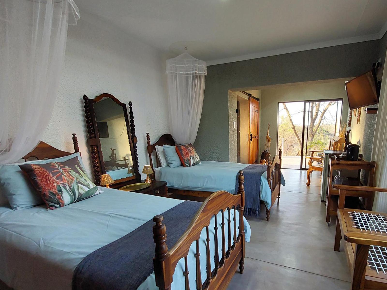 Phomola Manor is a self-sustainable lodge as we are running off-the-grid and completely on solar. Our borehole water is fully drinkable as we have a water purifying system. We are fully fenced in with electric fence and our waterhole is just outside the fence to view the animals come to quench their thirst. Phomola means " Place of Rest" so even just by relaxing at the pool, or being amazed at the view, whether it's some magnificent animal, bird or tree, catching some me time in the room or taking a stroll in the garden, we're sure you'll get some rest and exciting memories at Phomola Manor