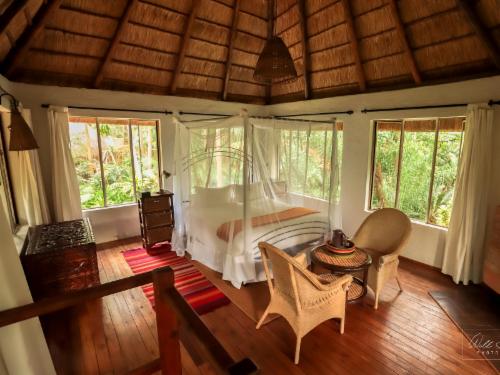 The Phophonyane Nature Reserve is home to small mammals such as red duiker, Cape clawless otter, bush buck and a remarkable 230 bird species including the elusive Narina Trogon, purple crested lourie and the wood owl.