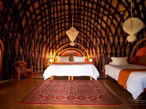 Guests at Phophonyane are guaranteed a high level of privacy and personal service. The 26 bed lodge offers accommodation in safari tents, family cottages, luxury beehives and a honeymoon suite, with some self-catering units. Each unit is individually woven into the lush fabric of tall sub-tropical forest. All meals can be enjoyed at the lodge’s renowned and stylishly furnished restaurant, where healthy home-cooked meals and fine wines are a feature. On cool winter nights, a roaring log fire lulls the senses and warms the heart.