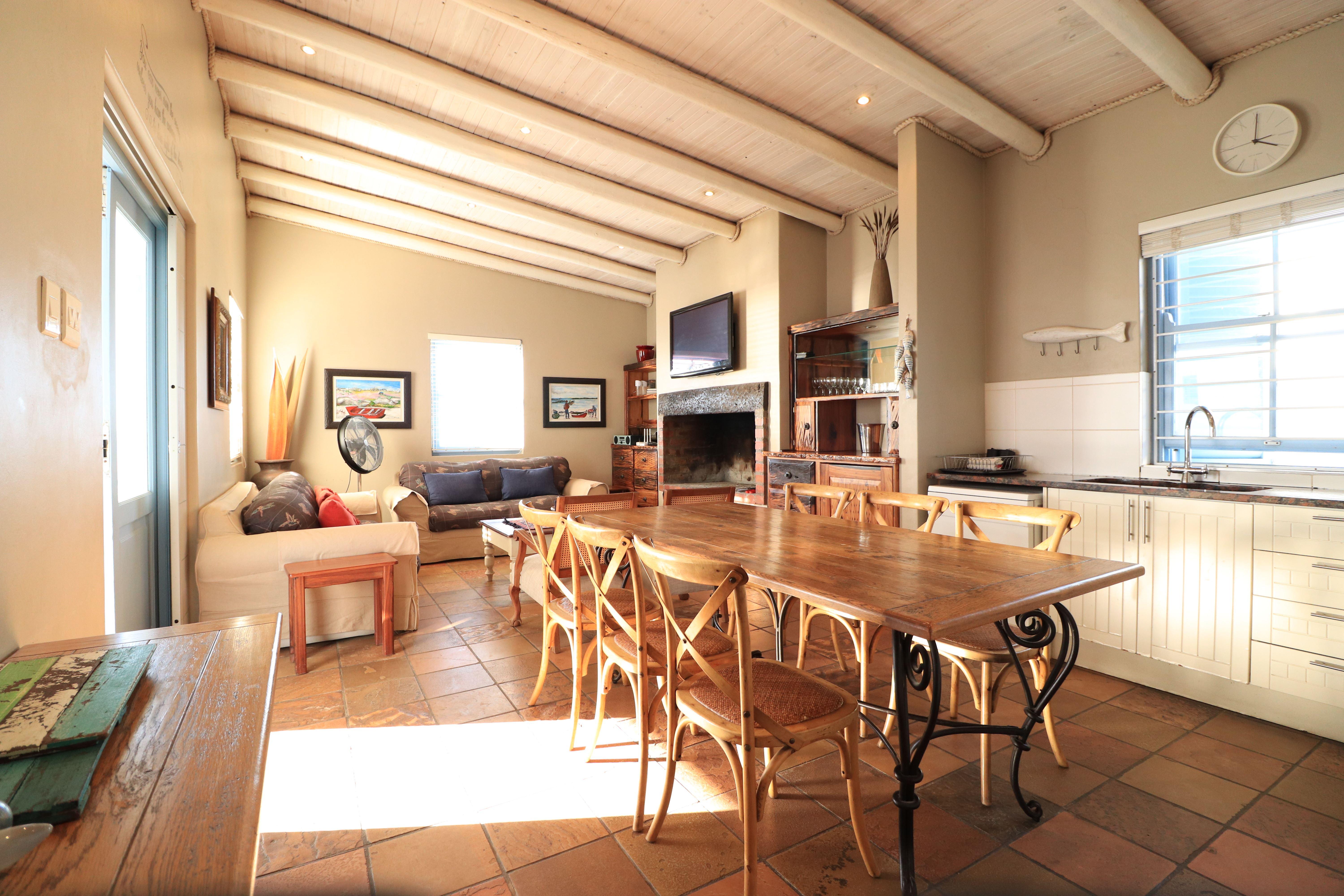 This beautifully appointed beach house is fully equipped for self-catering and located in the charming seaside village of Paternoster on the West Coast.This holiday home comprises three bedrooms (featuring double and twin beds) and two shared bathrooms (with heated towel rails). The open-plan lounge and kitchen has comfortable furnishings, including a large fireplace/braai, and a flat-screen TV with full DStv and a PVR recorder, for your entertainment.The kitchen has all the modern amenities you could need to make delicious meals during your holiday, including an oven a