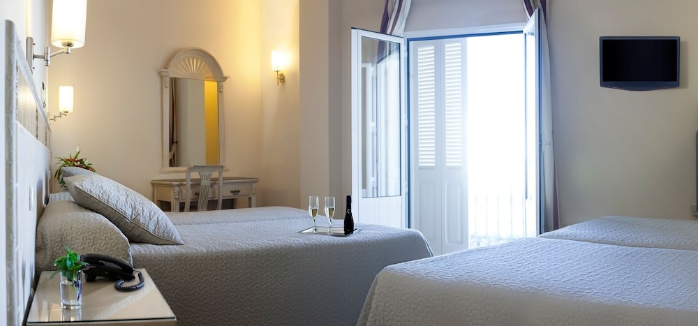 Facilities and services include 24-hour reception, restaurant, bar, rooftop swimming pool, wireless Internet access, meeting room, massages (extra charge), parking (extra charge) and elevator.Rooms feature air conditioning/heating, TV, telephone, safe (extra charge), minibar (extra charge), hairdryer and bathroom.Please note that some of the above facilities may be closed due to weather / seasonal conditions.The street where the hotel is located is a pedestrian zone at certain hours of the day.Address: Plaza Cavana 10, 29780 Nerja, Malaga, Spain.