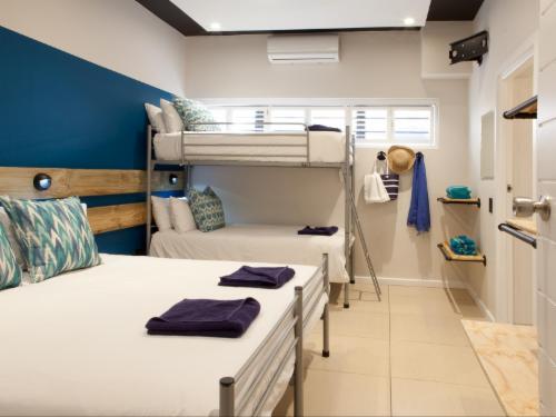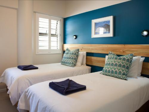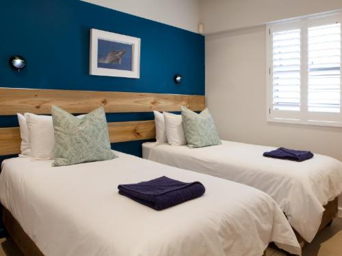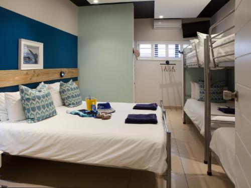 Plett Beachfront Accommodation is situated in Plettenberg Bay. Plett Beachfront accommodation offers dormitories and private rooms only a 5 minute walk from Central Beach. The tour desk can help guests organise activities such as whale watching, fishing and canoeing.Each of the rooms is simply decorated in white and the private rooms feature a bathroom with free toiletries. They are cooled with a fan and come equipped with a flat-screen TV.Guests can relax in the lounge and bar or enjoy a meal in the restaurant next door. Other local restaurants are available within a 5