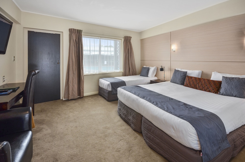 The Iconic Poenamo Hotel known for the history with the All Blacks is situated just eight minutes from the city centre. The Hotel has beenrecently refurbished to a 4 star standard with kitchenettes added to all the Poolside Studios.We are minutes away from the Takapuna Golf Course North Shore Hospital North Shore Hospice The Fairway Lodge North Shore Events Centre North Harbour Stadium and the Bruce Mason Centre where all major concerts sports games and conventions on the North Shore of Auckland take place.Within the complex there are a number Food and Beverage choices including The Backyard Bar and Restaurant Pat's Garage Sports Bar Gengys Mongolian BBQ Buffet Hell Pizza Kebab Fuel Bushman's Grill.*Free of charge* with every Poolside Studio is unlimited high speed internet use of the YMCA gym squash and yoga classes.Getting There:Coming from South of Auckland from the airport take the Northern Motorway 1 continue on this road until you're over the Harbour Bridgethen take the 419 Northcote Road exit turn left and the hotel is the first building on your right hand side approx 400m down the road.Coming from North of Auckland from the Southern Motorway 1 take the 419 'Northcote Road' exit turn right drive over the motorway and you willfind the hotel on your right hand side approx 400m down the road.Parking:All rooms have an allocated free of charge car park. We also have another complimentary car parking area at the rear of the complex. Free Truck and Coach parking available.Reception hours - Sunday to Wednesday 7.30am to 8.00pm -Thursday to Saturday 7.30am to 9.00pmThings To Do:We are centrally located to a host of beaches all within five minutes' drive of the hotel three major shopping centres are within 10 minutes' drive. Next door is Takapuna Golf Course & Driving Range and across theroad is Onewa Domain. We are also within minutes of theatres leisure centres and sporting facilities.