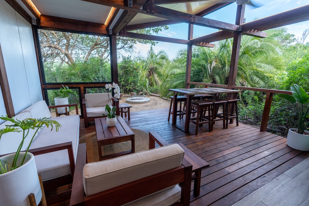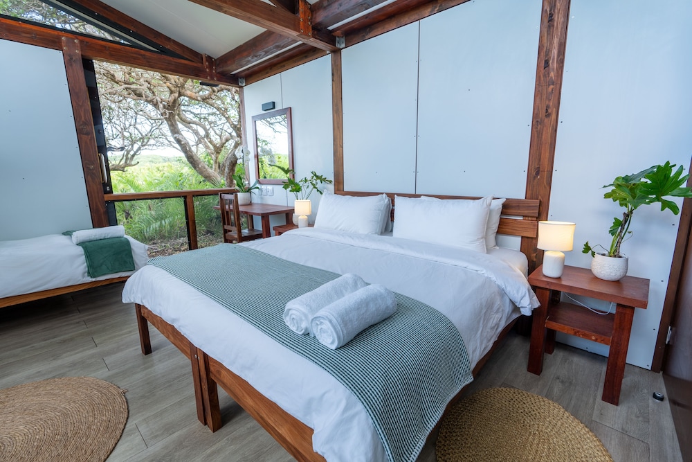 Nestled in the core of Maputo Special Reserve’s coastal forest, behind the sand dunes and few metres away from the long fine white sand beach and the turquoise sea, Ponta Membene offers the ideal base for both adventurous safari and laziness.Accommodation is offered in self-catering Dune and Forest Chalets, as well as campsites with exclusive ablutions and a group campsite with its own kitchen facility and ablution.The Dune Chalets are positioned on the lowest part of the coastal dune, from the west you get the sunset dimming through the forest over the wetland and from