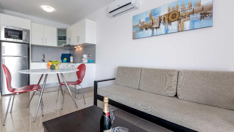 The apartment hotel is located in the tourist resort of Puerto Rico, Mogán, in the southwest of the island. It is situated 100 metres from the sandy beach and crystal-clear waters where guests can practice any sport. The establishment is approximately 40 km from Gran Canaria Airport and there are numerous taxi services and buses that connect to Puerto Rico.Renovated in 2010, the apartment hotel features several lounges for relaxing, reading, watching TV and using the Internet. The property comprises 153 rooms and welcomes guests in a lobby with 24-hour reception and check-out service. In addition, a large garden with pool, a café, a Hindu restaurant, a pub and a bar are provided. Dining services are available in the rooms and guests can enjoy the superb buffet breakfast. Further facilities on offer include a hotel safe, currency exchange facilities, lift access, a newspaper stand, a hairdressing salon, conference facilities and wireless Internet access.All rooms are equipped with a direct dial telephone, satellite/cable TV and a safe. The en suite bathrooms are fitted with a shower and hairdryer. Rooms with double or king-size beds are available. The kitchens offer a fridge, microwave and tea and coffee making facilities. Guests also have a washing machine, ironing set and a balcony or terrace at their disposal in the rooms.Guests may take a refreshing dip in the heated outdoor swimming pool, and refreshments are served at the poolside snack bar. Sun loungers and parasols are laid out on the sun terrace for use and may be hired on the sandy beach. Facilities for playing pool/snooker are also available.A continental breakfast buffet is served each morning and lunch may be selected à la carte.