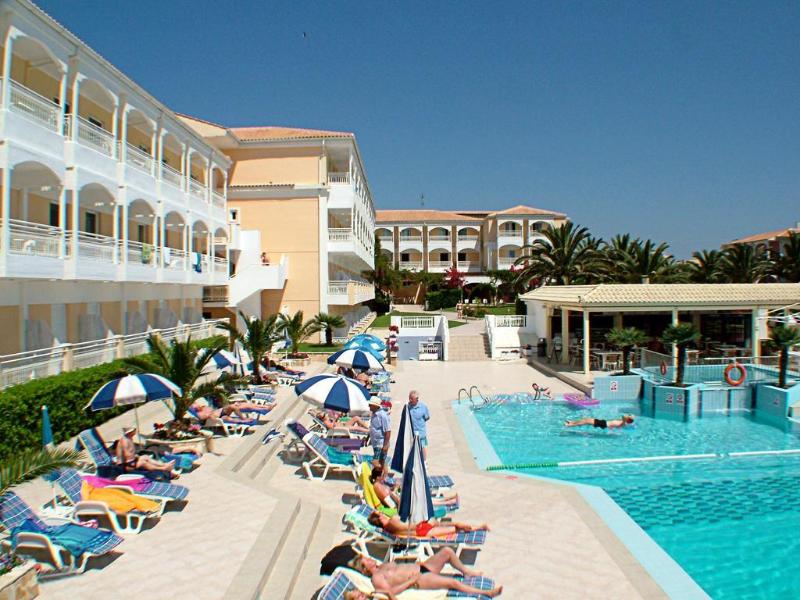 This 3 star hotel is located on the coastline of Zakynthos. The Hotel has an outdoor swimming pool. All 250 rooms are equipped with hairdryer, safe and air conditioning.