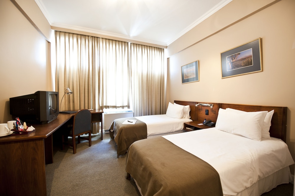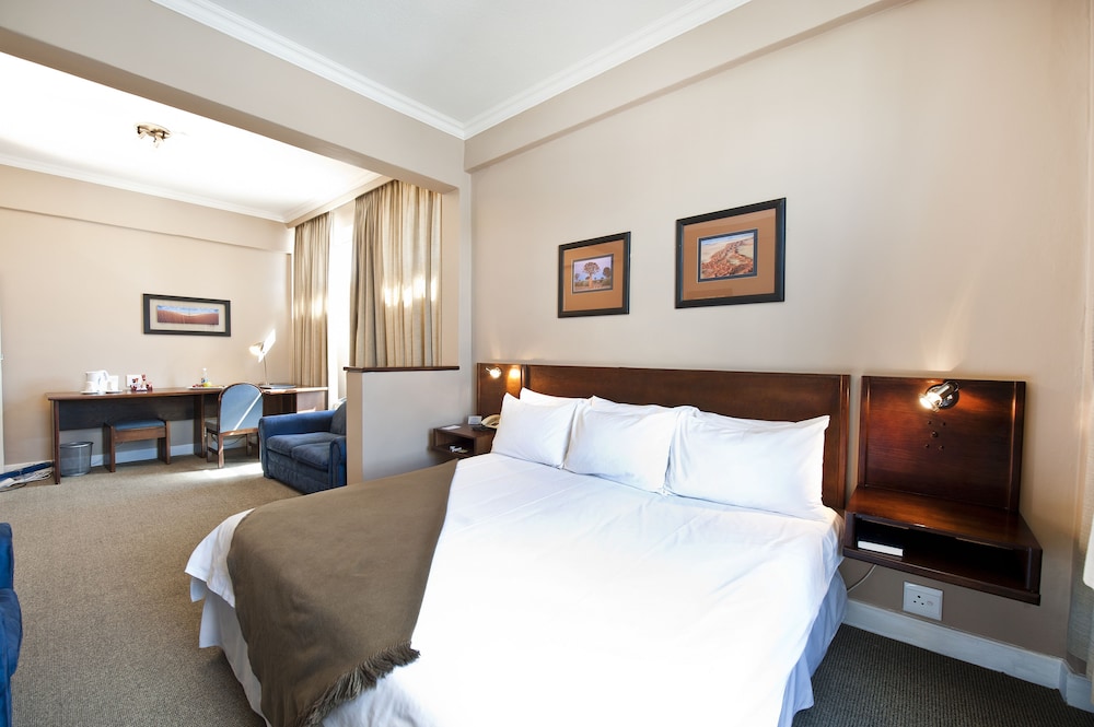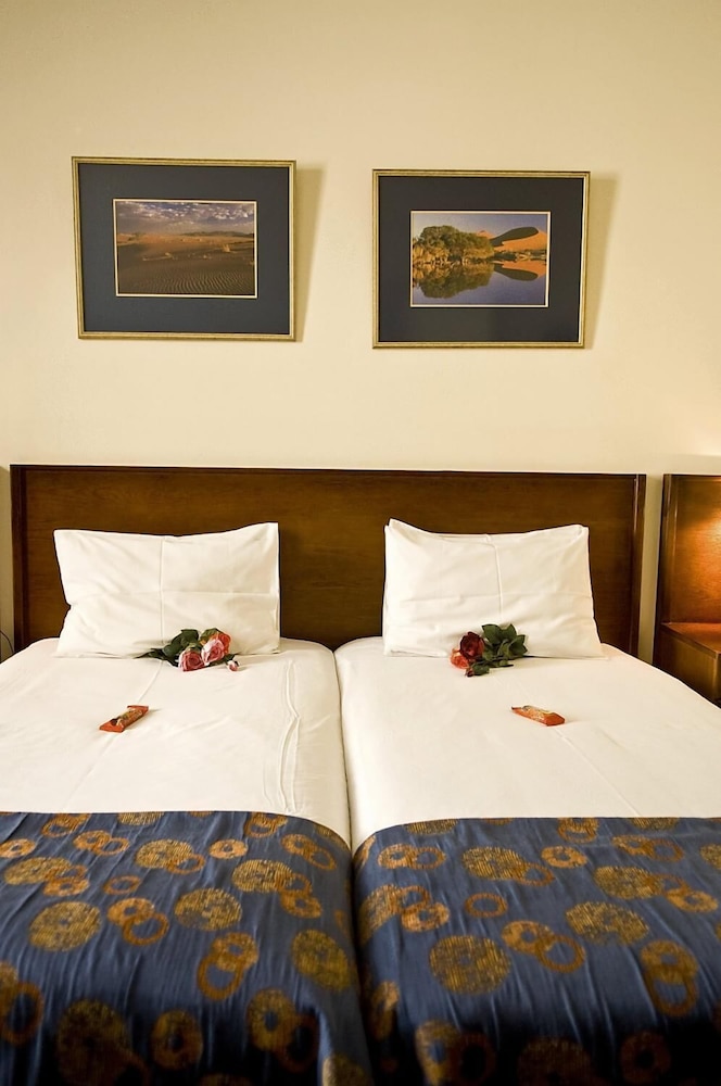 This hotel is located on Independence Avenue, the Main Street in Windhoek, in the CBD area, 400 m from the city centre. The convention centre is just 1 km away and the closest airports are Eros Airport (5 km) and Hosea Kutako International Airport (50 km).This city hotel comprises a total of 43 rooms. Facilities on offers to guests at this air-conditioned establishment include a 24-hour reception, a currency exchange facility, a hotel safe, a bar and a restaurant. Guests will appreciate the range of conferencing facilities which can accommodate up to 130 persons. They can also take advantage of the babysitting, trouser pressing and turndown services. Room service is also available. On request, they can also use the airport shuttle.The hotel's smoking and non-smoking rooms are conveniently suited for any needs, whether guests are travelling alone or with the family. All come with a private bathroom with a shower/bathtub, bathroom amenities and a hairdryer. They are equipped with a telephone, satellite TV, a work desk, a seating area, a minibar and tea and coffee making facilities. Furthermore, an ironing set and air conditioning units are provided in all accommodation as standard.Golf enthusiasts can play a round of their favourite sport just 5 km from the property.Guests may select their breakfast from a buffet and the midday and evening meals may be enjoyed à la carte.