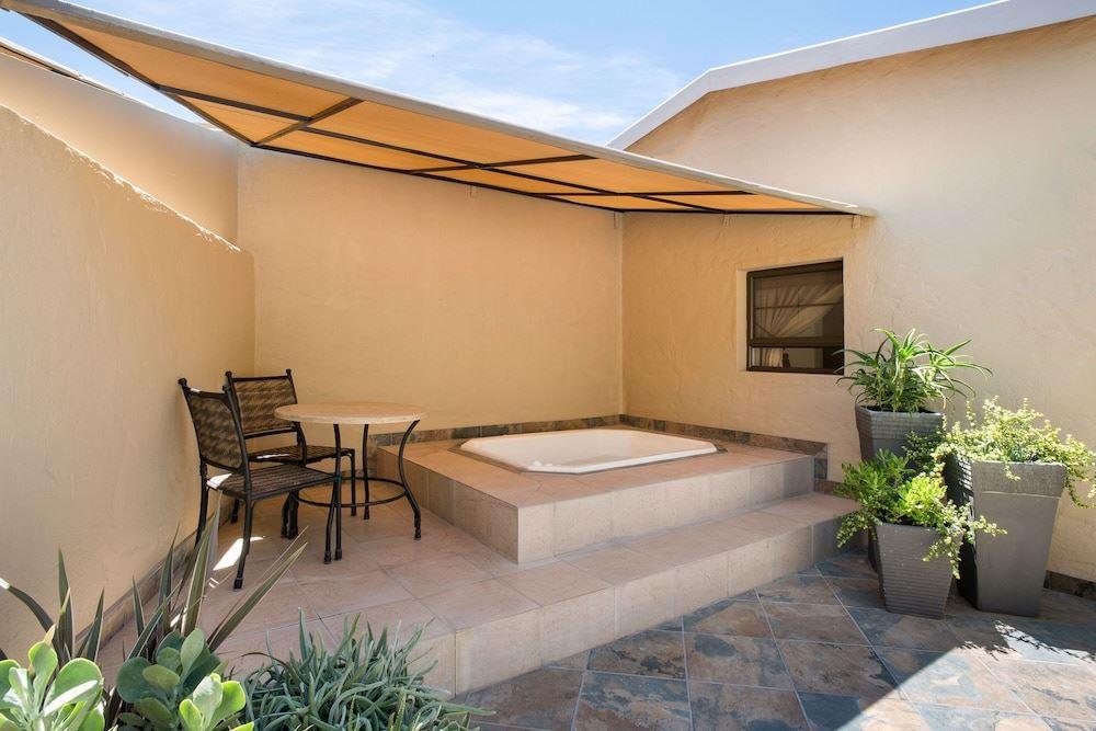 Guests connect with free Wi-Fi and satellite TV and other in-room conveniences include coffeemakers and hairdryers; some rooms have kitchenettes. Two restaurants and room service supply plenty of variety including a poolside bar with casual fare. With a tennis court four pools a playground and a full-service spa there are several recreational options and guests can arrange safaris horse rides and golf via the concierge desk. The 24-hour front desk and the business center can help corporate guests and for those who want to stay fit check out the exercise room. Other amenities include free parking laundry service and a free airport shuttle.