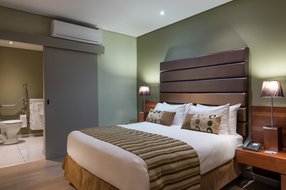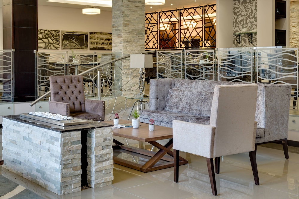 Guests are a short walk from shopping dining and the lush riverside when staying in the well-appointed rooms at the non-smoking Protea Hotel by Marriott Upington. The low-rise Protea Hotel by Marriott Upington is non-smoking and has 90 elegantly modern rooms all equipped with Wi-Fi and flat-panel TVs. Some rooms boast balconies with lovely views and all of the rooms feature mini-fridges coffeemakers and hairdryers. Guests can dine at the on-site restaurant or order up 24-hour room service. Check with the 24-hour front desk for business services and stay in shape using the fitness center. The small outdoor pool is surrounded by an expansive patio area with plenty of loungers and seating. Other pluses include meeting rooms laundry facilities and free parking. Across from the Orange River the Protea Hotel is in the middle of town off Highway 14. Guests have their choice of several shops and restaurants in the surrounding blocks.