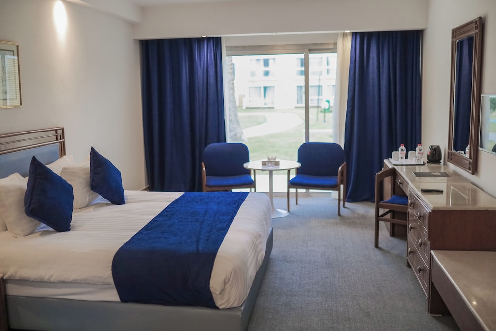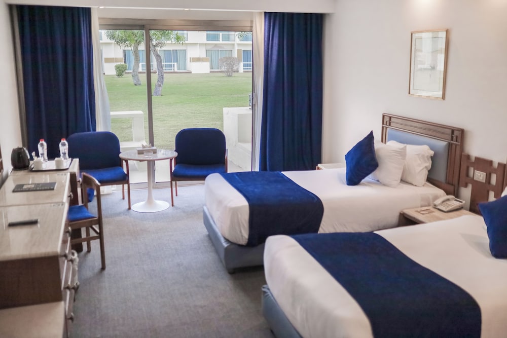 Pyramids Park Resort Cairo is set in 25 acres of gardens, just 5 minutes drive from the Pyramids. It has a 1750 square metre pool and all its rooms have balconies. All the rooms at Pyramids Park are air conditioned and cable TV. Guests at Pyramids Park can dine at one of the hotels 4 restaurants and dine by the pool. There is also a piano bar offering live music and a discotheque. The Pyramids Park Resort centre offers information, and can arrange activities and local tours. *** Customers with Egyptian nationality who stay in the hotel sharing a room must provide a marriage certificate
