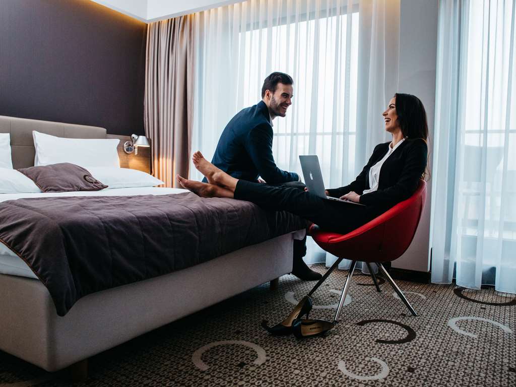 Free Wi-Fi a restaurant fitness center and ICE Conference Centre located next door are the highlights of the non-smoking Best Western Plus Q Hotel Krakow. Opened in 2014 the non-smoking Best Western has 154 rooms in a six-floor building. Rooms range from 215 to 485 square feet in size and all come with in-room safes minibars coffee/tea makers air conditioning desks free Wi-Fi 42-inch flat-panel TVs with satellite and English channels and comfy beds with thick mattresses. Some rooms have bathrobes and slippers and a free bottle of wine and junior suites and apartments are available. Enjoy the breakfast buffet (for a fee) in the restaurant which also serves Polish and international cuisine for lunch and dinner. The hotel also features room service a cocktail bar business center 24-hour front desk on-site parking (for a fee) and fitness center with cardio machines and massage chairs. Pets are allowed for a nightly per-pet fee. The Best Western Plus is in the center of Krakow next to ICE Conference Centre a little over a half-mile west of the Jewish Quarter. Wawel Cathedral and Royal Wawel Castle are a less than a mile north and Old Town Market Square and St. Mary's Basilica are one-and-a-half miles north of the hotel. Florian Gate and the Czartoryski Museum are a little less than two miles northeast. If you're coming from John Paul II International Airport the hotel is nine miles southeast.