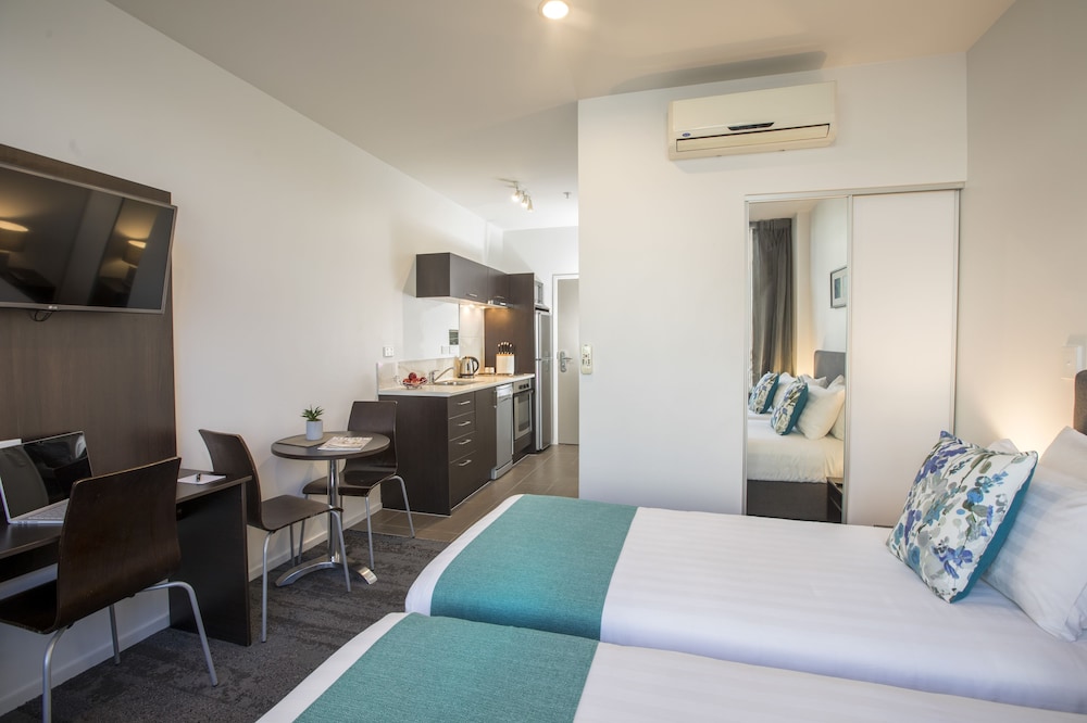 The only Quest in West Auckland is conveniently located in a quiet place of the very active Henderson area and surrounded by a large and growing array of industries and major companies. Only 20 minutes' drive from both central Auckland and the wild bush or beaches of the Waitakere Ranges, Quest Henderson is the closest self-contained and accessible stop to the Trusts Stadium, Westwave Aquatic Centre, Westfield West City Mall and the Waitakere Hospital. Grocery store, gym, pool, cinema and parks are all within walking distance and we are happy to provide chargeback solutions with popular local restaurants and cafes. We are proud to offer newly renovated and upgraded non-smoking apartments that notably feature fully equipped kitchen and washing facilities as well as on-demand movies. Our praised staff strives to provide you with all you need and will be delighted to help you make your stay the most successful and comfortable experience.