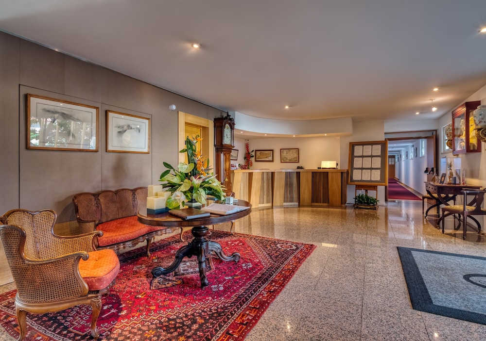 The Estalagem Quintinha Sao Joao is a small hotel located in a quiet area amidst subtropical gardens, 1,5 km from the centre of Funchal, the capital of Madeira, 800 m from the Estadio Dos Barreiros and 1 km from the Marina. The airport is 23 km from the hotel.The hotel facilities and services include 24 h. reception, lobby area with lift, lounge, games room, meeting room, wireless internet access in public areas (with extra charge), restaurant (situated in an adjacent building to the hotel), bars, outdoor heated pool, terrace, gardens, gym and Spa (with extra charge) with indoor heated pool, Jacuzzi, sauna, Turkish bath, specialised showers, massage services and a variety of beauty treatments. The hotel also provides a courtesy shuttle bus twice daily to the centre. The rooms are equipped with A/C & heating, TV, DVD player, direct telephone line, living area with sofa bed, safe (with extra charge), mini bar, writing desk, wireless internet access (with extra charge), balcony or terrace and bathroom with bathtub/shower, bathrobe and hairdryer. Room service (limited hours) and laundry service are available (both with extra charge).The hotel also features parking facilities.Address: Rua da Levada de São João, 4, 9000-191 Funchal, Madeira, Portugal.