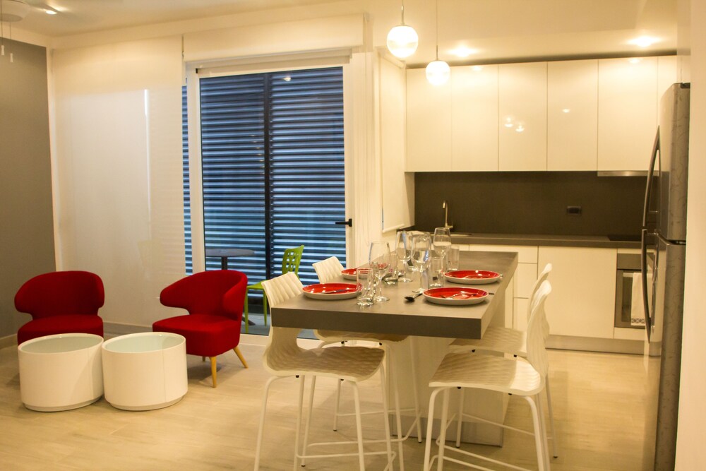 The hotel is located on the popular Quinta Avenida in Playa del Carmen. The beach is only steps away and Cancun International Airport is 45 minutes away.The hotel has 20 guest rooms featuring Caribbean and Mediterranean styles, distributed across the 3 floors of the building. In the centre of the hotel there is an ancient Mayan tree surrounded by a wide array of tropical plants forming a beautiful garden. The hotel also offers a 24-hour reception service, a restaurant and a bar, as well as a laundry and a babysitting service.Rooms feature 1 king-size bed, air conditioning, cable/satellite TV, telephone with voicemail, minibar and a safe deposit box. The suite bathroom has a shower and a hairdryer and some rooms include a kitchenette and a private terrace or balcony. Connected rooms, cots and extra beds are available upon request.The hotel has 2 solariums, hammocks, a beach club, swimming pool, hot tub overlooking the garden and a massage service.The hotel features the Cenacolo Italian Restaurant and a bar with special drinks.