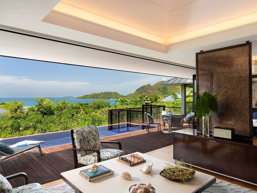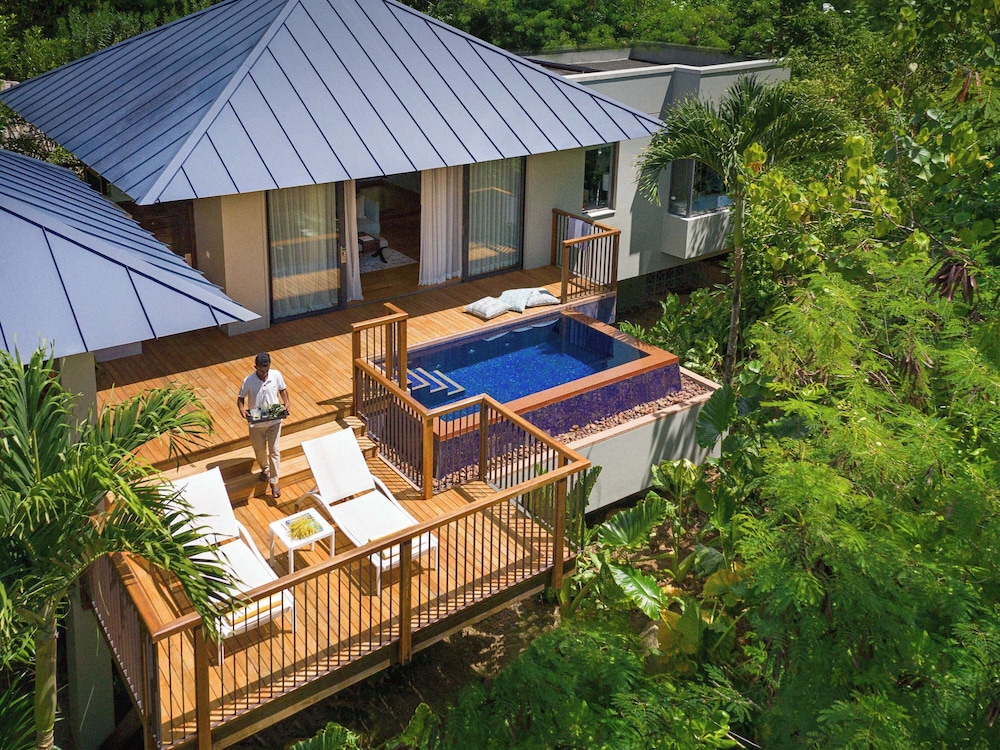Closely located to one the world’s most beautiful beaches – Anse Lazio Raffles Seychelles offers luxurious villas on the island of Praslin easily accessible via a 15-minute flight from Mahe International Airport. It offers private plunge pools and 2 infinity pools.Each with free WiFi access the modern villas have open-air balconies overlooking the garden the ocean or the surrounding area. The spacious air-conditioned villas have a flat-screen TV with cable channels and also come with a minibar and a Nespresso coffee machine.Facilities offered include a beauty salon the Sugar Palm Kid’s Club and 6 restaurants and lounges from fresh Mediterranean cuisine at Losean restaurant a rooftop terrace and shisha lounge to private dinners on the beach.Raffles Spa features private outdoor treatment rooms overlooking the serene blue ocean and tropical landscape.The resort is located close to the Vallee de Mai a UNESCO World Heritage site and is also a 15-minute ferry ride away from Curieuse Island home to 500 giant tortoise and La Digue famous for its secluded beaches diving and snorkeling.