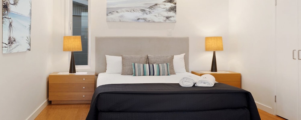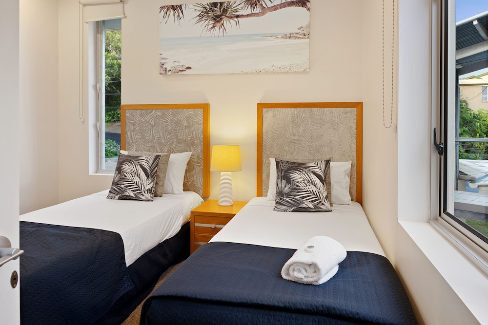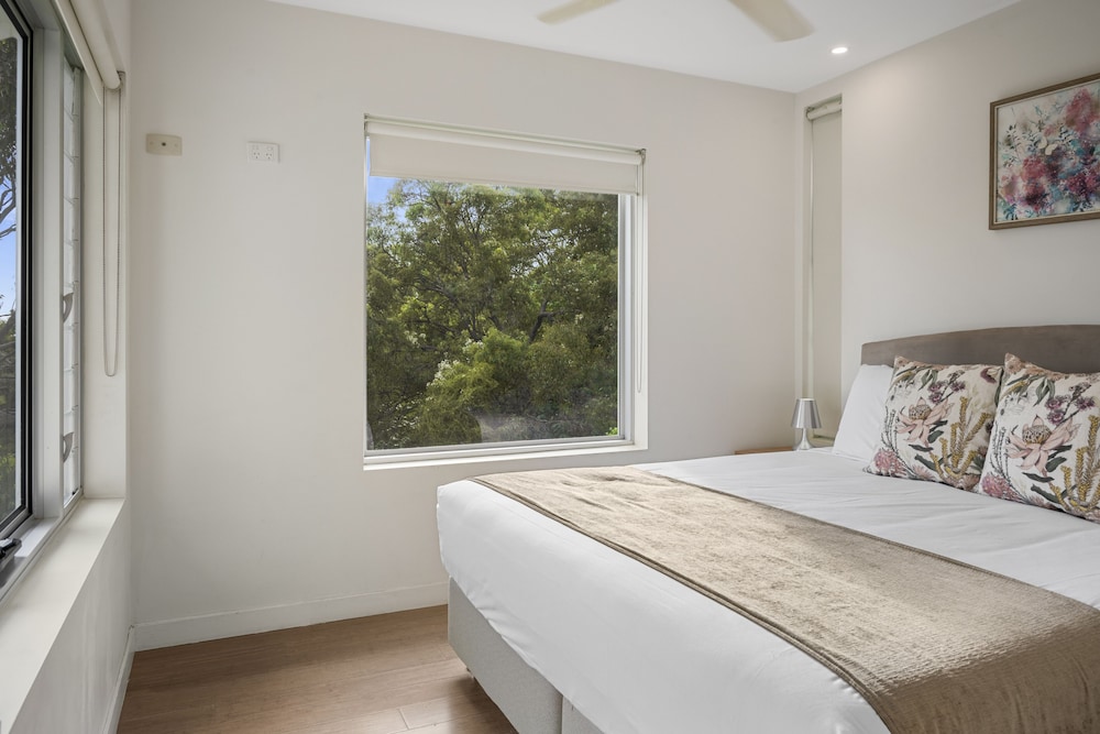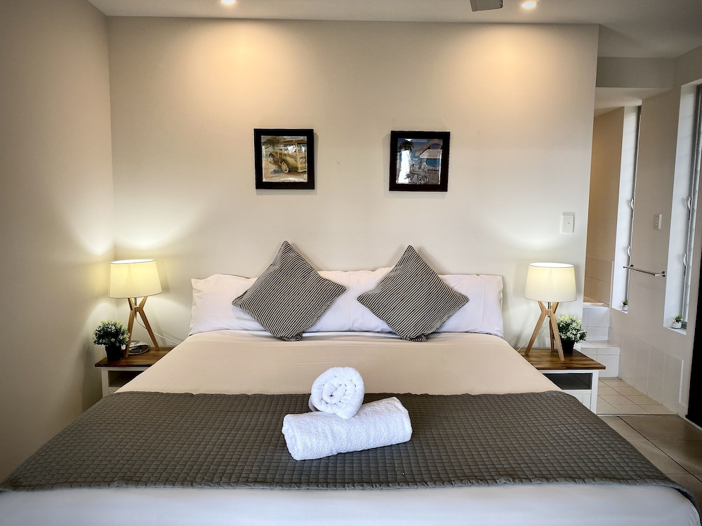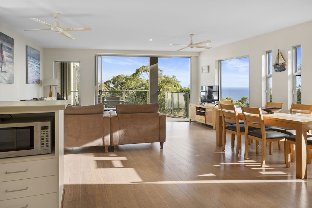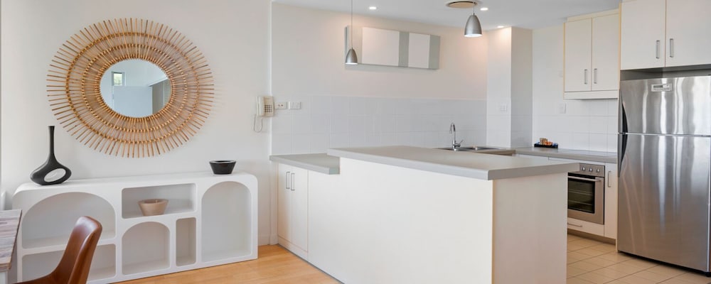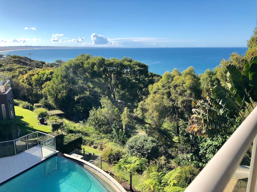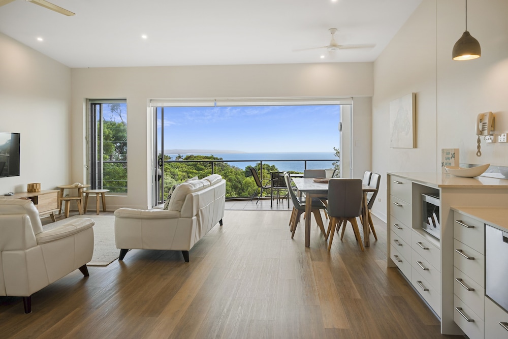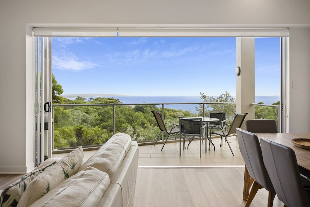 Rainbow Ocean Palms Resort is a boutique apartment complex positioned on the highest point in Rainbow Beach offering panoramic ocean views to World Heritage listed Fraser Island and beyond. The spacious luxury apartments open out to sweeping views of the bushland and seascape beyond the infinity style swimming pool. Nestled against Great Sandy National Park peace and tranquillity abound in a place where luxury meets nature and the forest meets the sea. Walking trails and wildlife viewing opportunities are just a few steps away and endless white sandy beaches are just a short walk from the resort. The award winning Waterview Bistro is located on-site and is the perfect location to enjoy relaxed drinks and dining with calming ocean views.